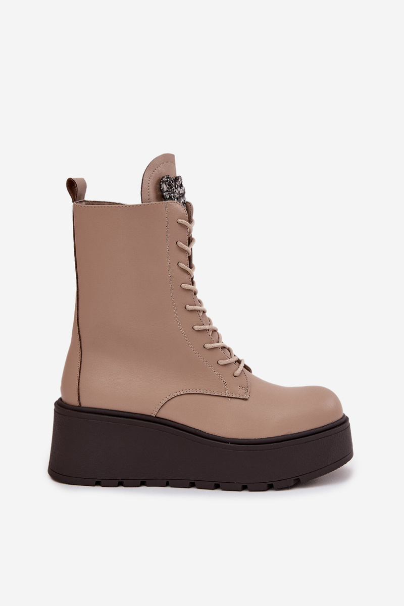 Kožené dámske čižmy s ozdobou vyhrievané béžové Ulrika