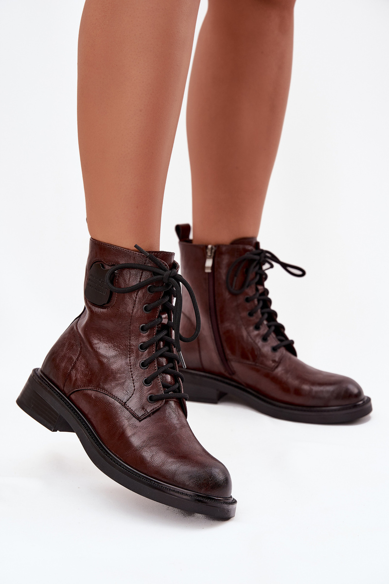 Kožené dámske pracovné čižmy s ozdobným detailom Maciejka K7180-01 hnedé