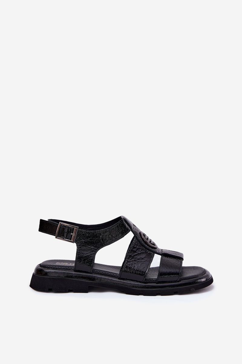 Kožené dámske sandále lakované s ozdobným detailom Artiker 56C0691 čierne