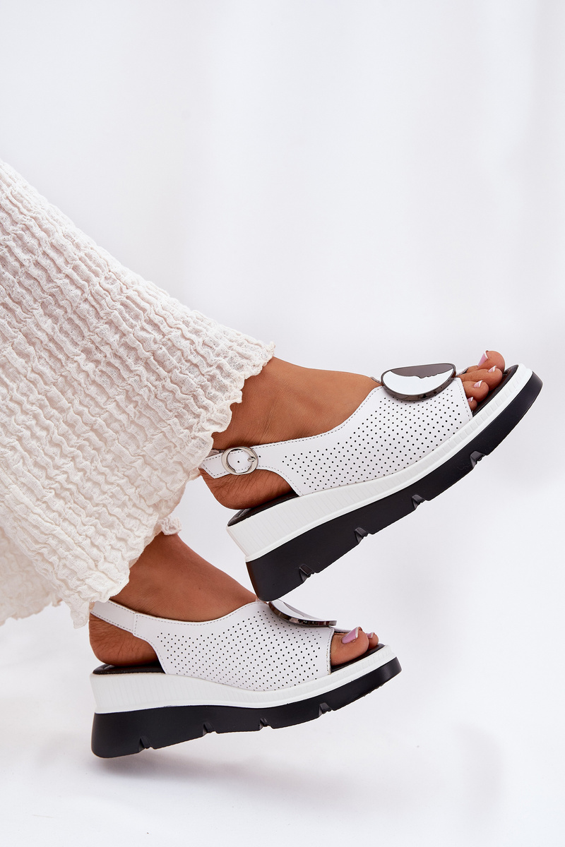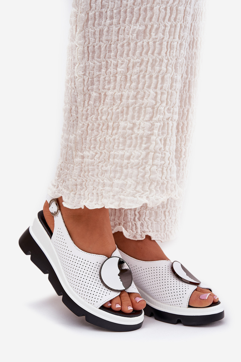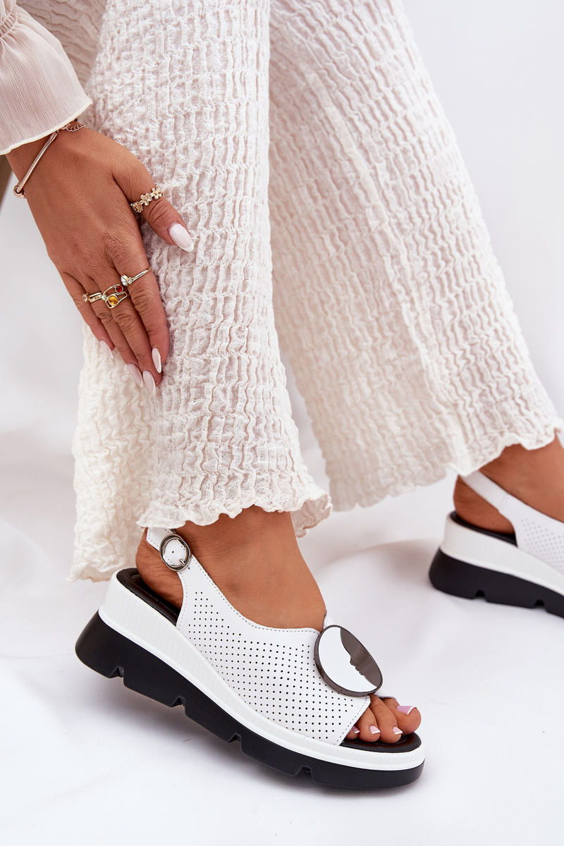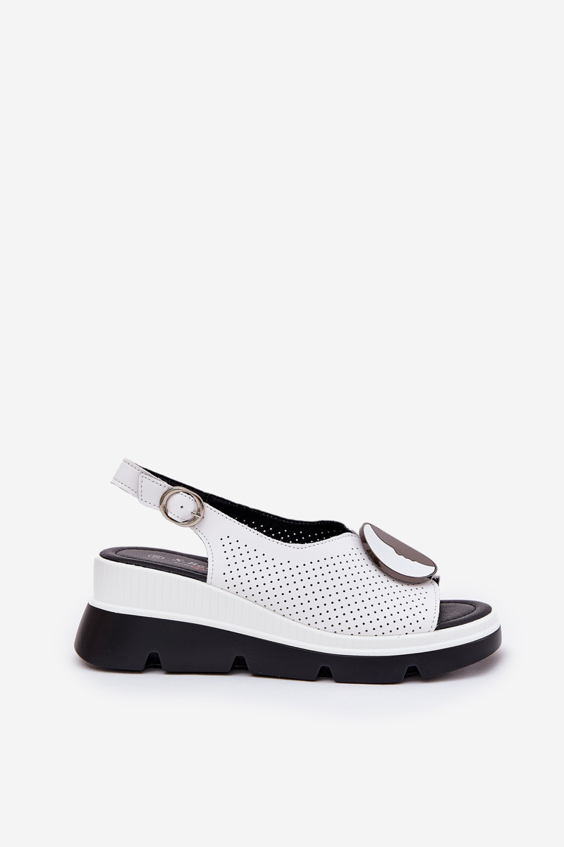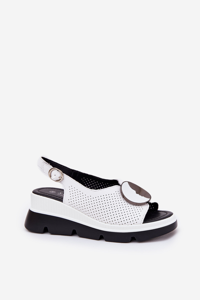 Kožené Dámske Sandále Na Klíne S Ozdobou S.Barski LR51-788 Biele