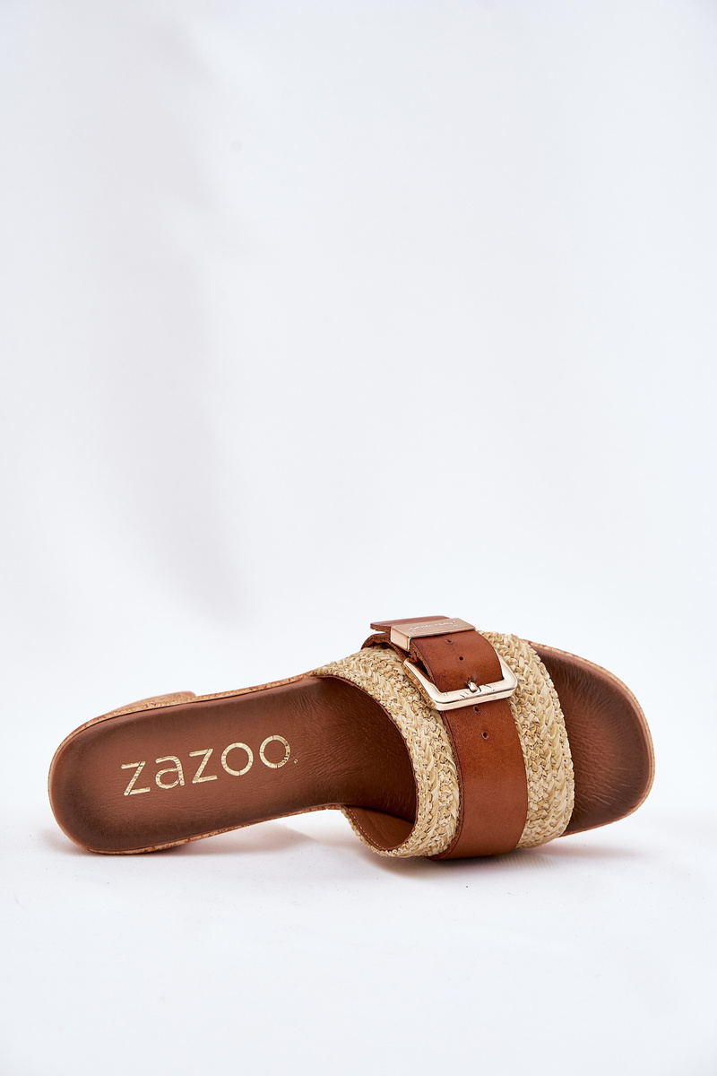 Kožené Dámske Sandále Na Opätku S Prackou A Pletením Hnedé Zazoo 40459