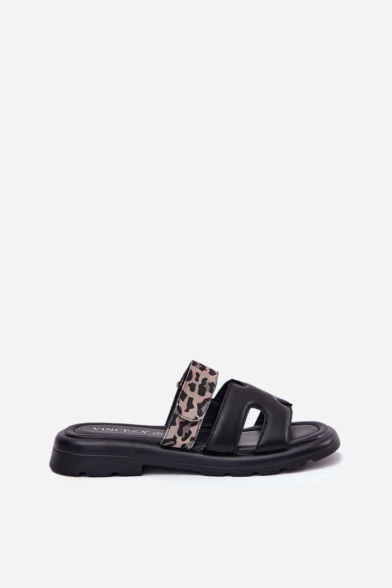 Kožené Dámske Sandále S Pásikom Leopard Vinceza 66769 Čierne