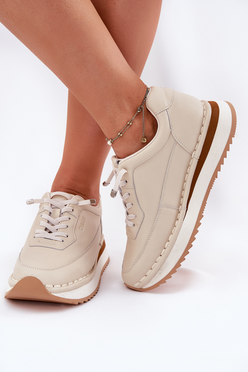 Kožené Dámske Tenisky Na Platforme Big Star RR274A334 Béžové
