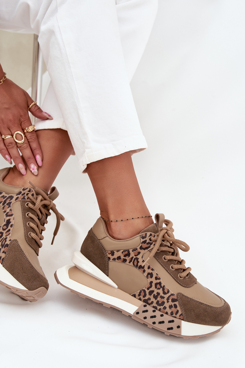 Kožené dámske tenisky na platforme s leopardím vzorom Artiker 55C0089 Hnedé