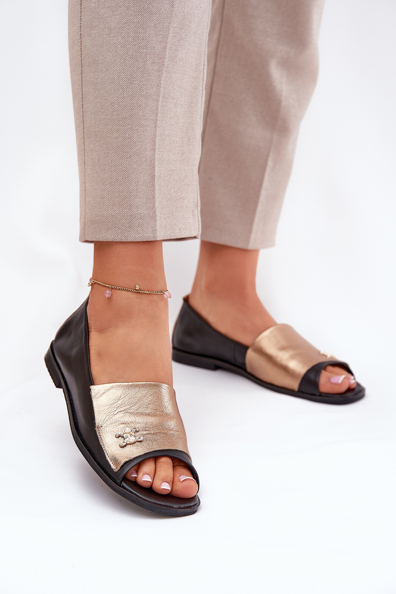 Kožené Elegantné Baleríny S Odhalenými Prstami Zazoo 1865 Zlaté-Čierne