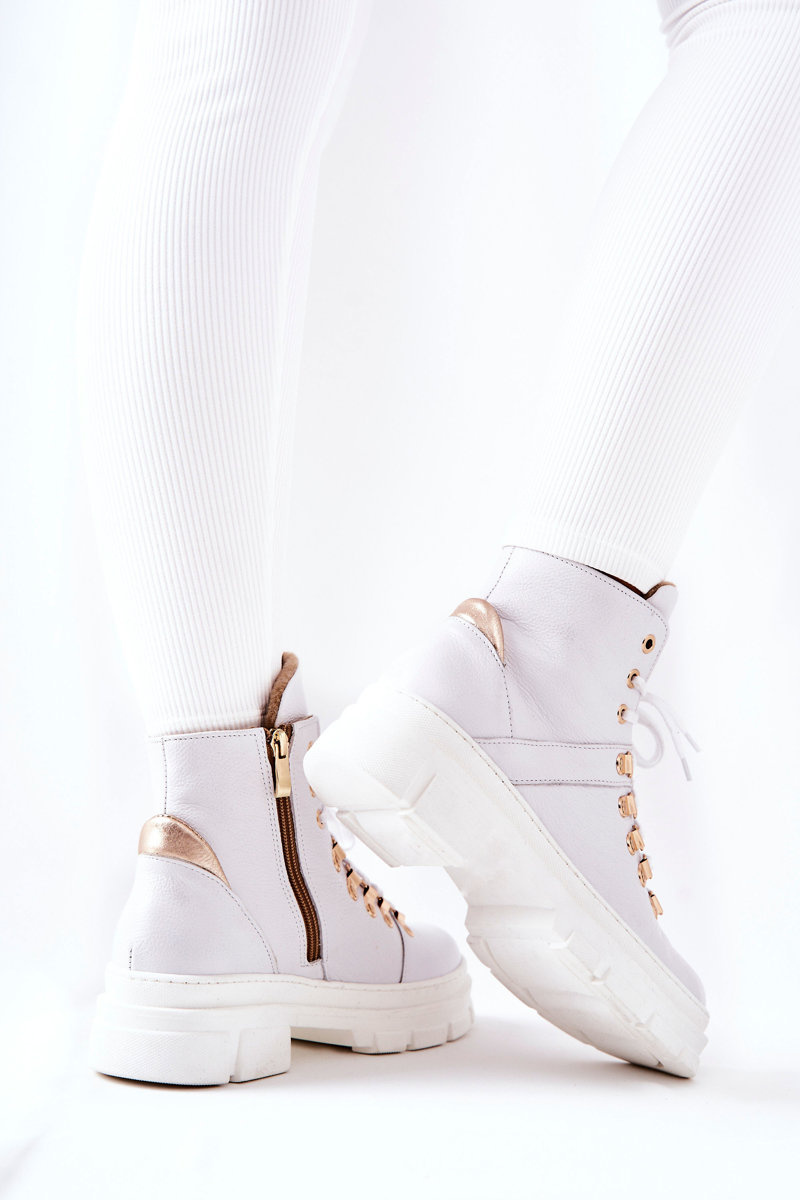 Čižmy boli vyrobené z vysoko kvalitnej prírodnej kože. Majú hrubú podrážku, ktorá sa dokonale izoluje z studenej zeme. Väzba znamená, že ich môžete prispôsobiť na úsek nohy a posúvač uľahčuje upevnenie. Topánky vo vnútri majú zahrievanie vo forme obuvnej prikrývky a tuhej päty. Perfektný model pre zimu! Skontrolujte tiež našu ďalšiu ponuku izolovaných topánok! Pri výbere veľkosti navrhnite tabuľku veľkosti.