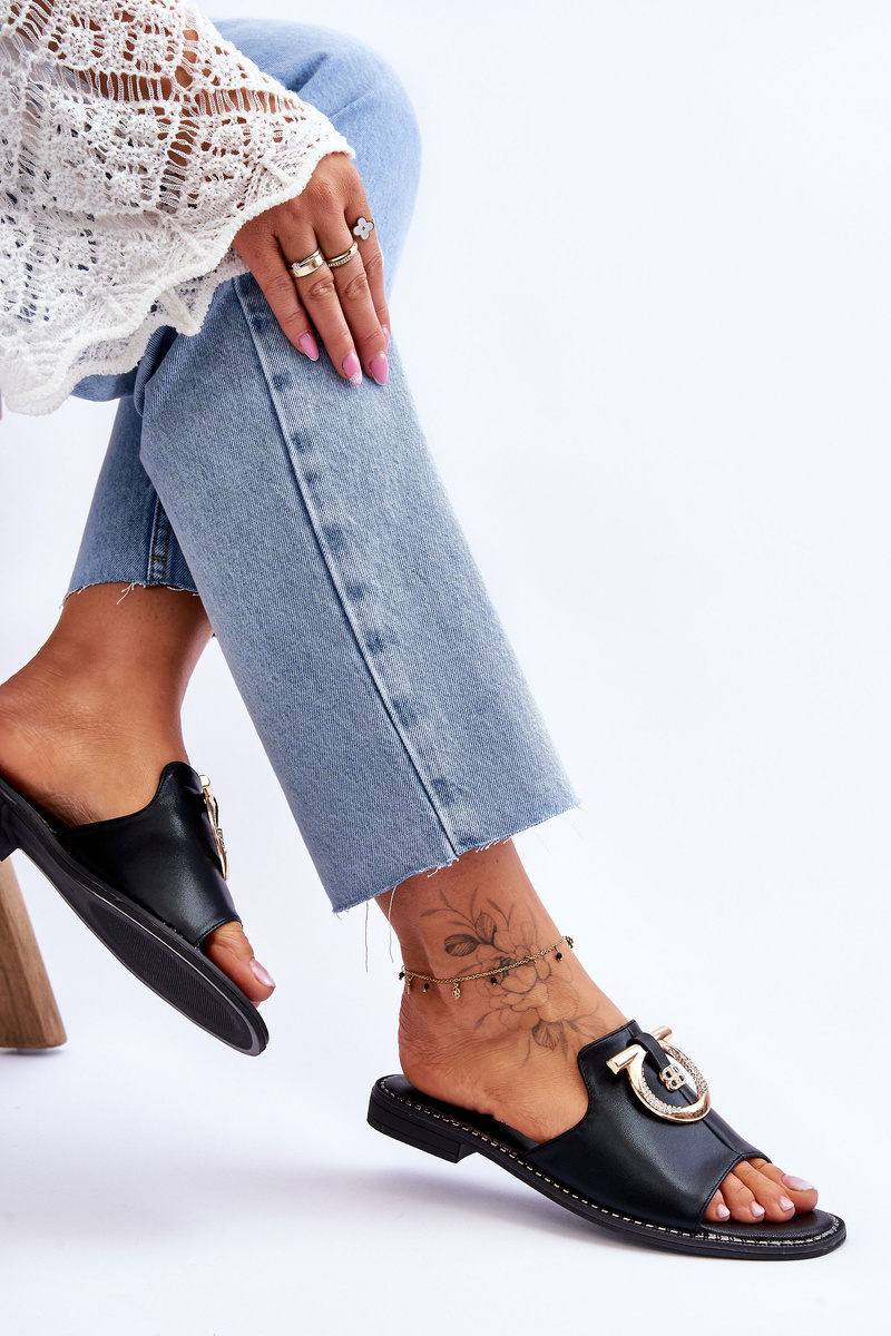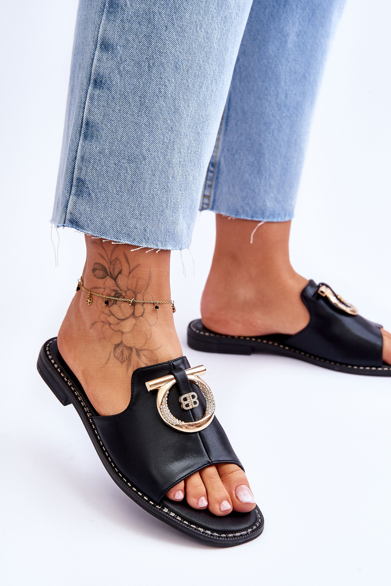 Klasické flip -flops vyrobené z ekologickej kože. Tento model má vpredu plastovú dekoráciu s kamienkami. Klapky sú umiestnené na plochej päte a sú zdobené cvočkami podrážkou. Tento model je vynikajúci v horúcich dňoch! Mali by ste ich mať! Pri výbere veľkosti navrhnite tabuľku veľkosti.