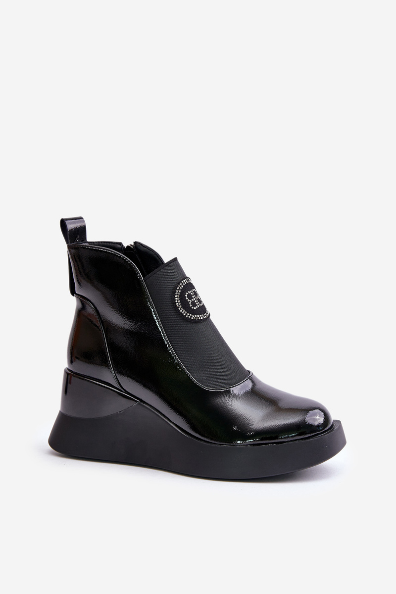 Dámske čižmy značky S.Barski, umiestnené na platforme a podpätku. Vyrobené z eko kože. Zapínanie na zips na boku. Na zvršku je elastický vsadený prvok a ozdoba v podobe malých nitov. Špičky sú zaoblené. Vnútro je zateplené obuvníckym fleeceom. Mäkká stielka zabezpečuje pohodlie pri nosení. Při výběru velikosti se řiďte tabulkou velikostí.
