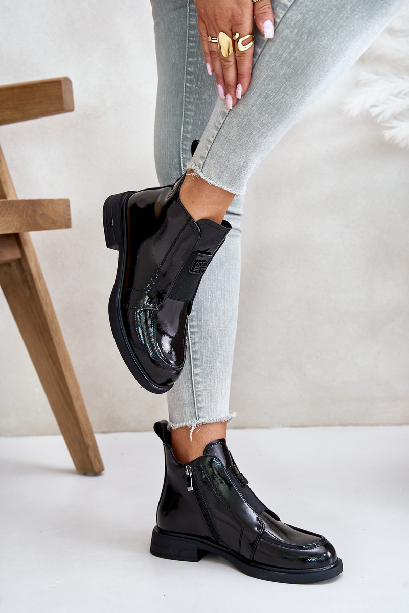 Kožené Lakované Čižmy Dámske Na Zips D&A JC42-24 Čierne