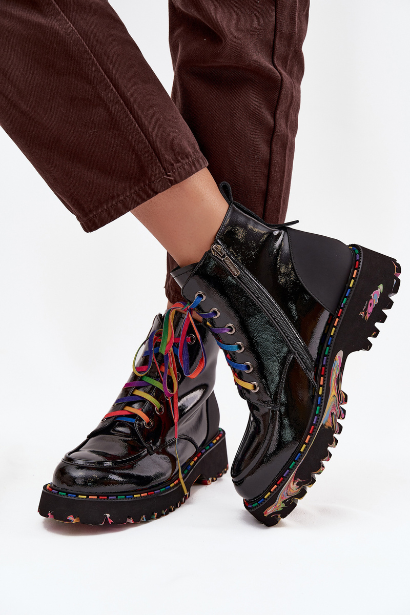 Kožené lakované dámske členkové čižmy Artiker 57C0064 Čierne