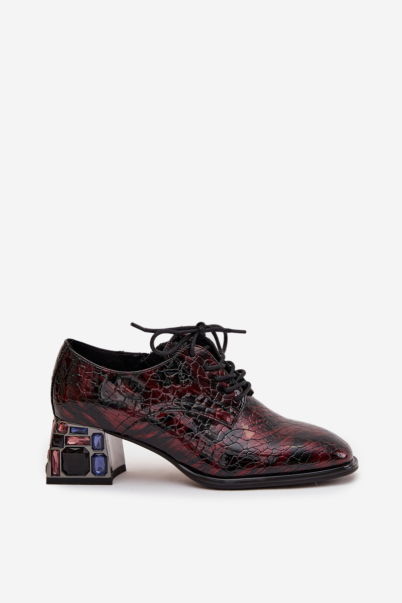 Kožené lakované dámske poltopánky na podpätku s krištáľmi Artiker 57C0073 Bordó