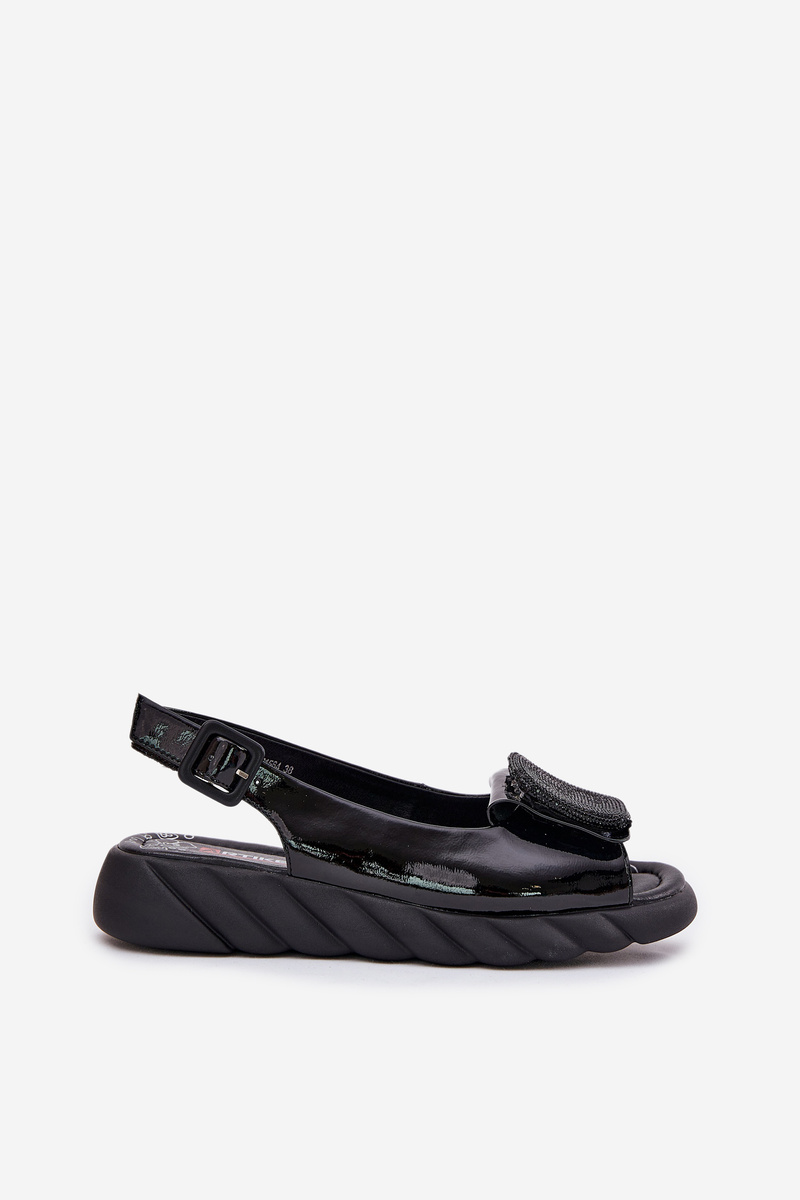 Kožené Lakované Dámske Sandále Na Klíne s Dekoráciou Artiker Čierne 56C1564