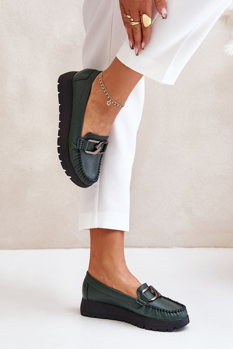 Kožené Mokasíny Na Platforme S Ozdobou Tmavozelené Zazoo 10141