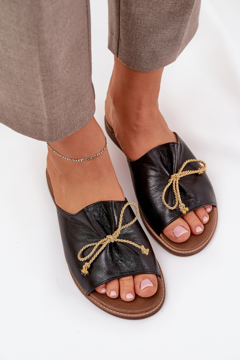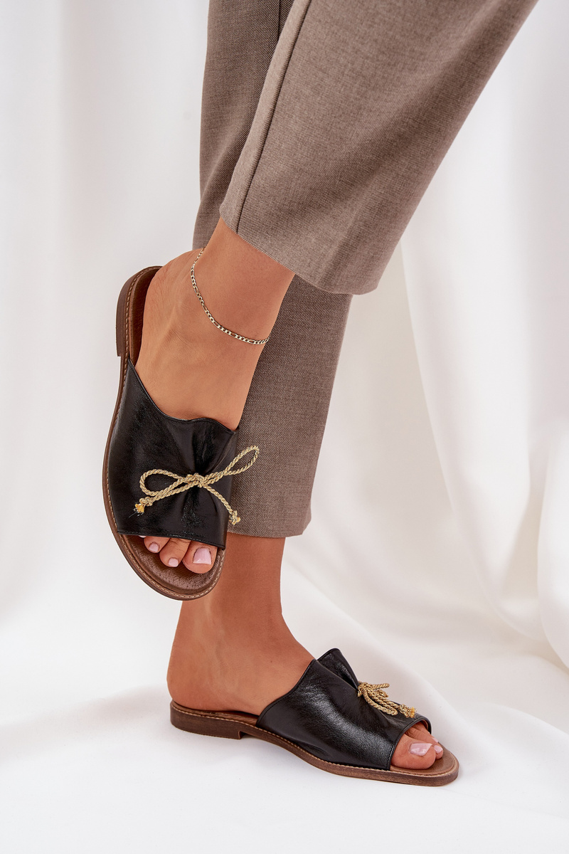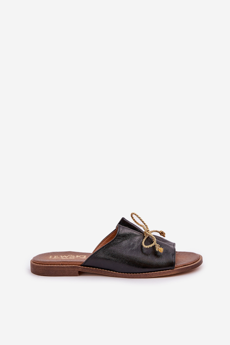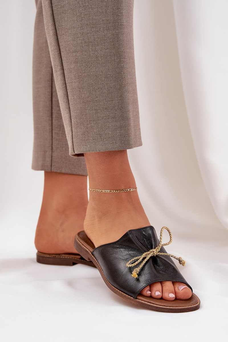 Kožené Ploché Elegantné Sandále S Mašľou Lewski 3572 Čierne