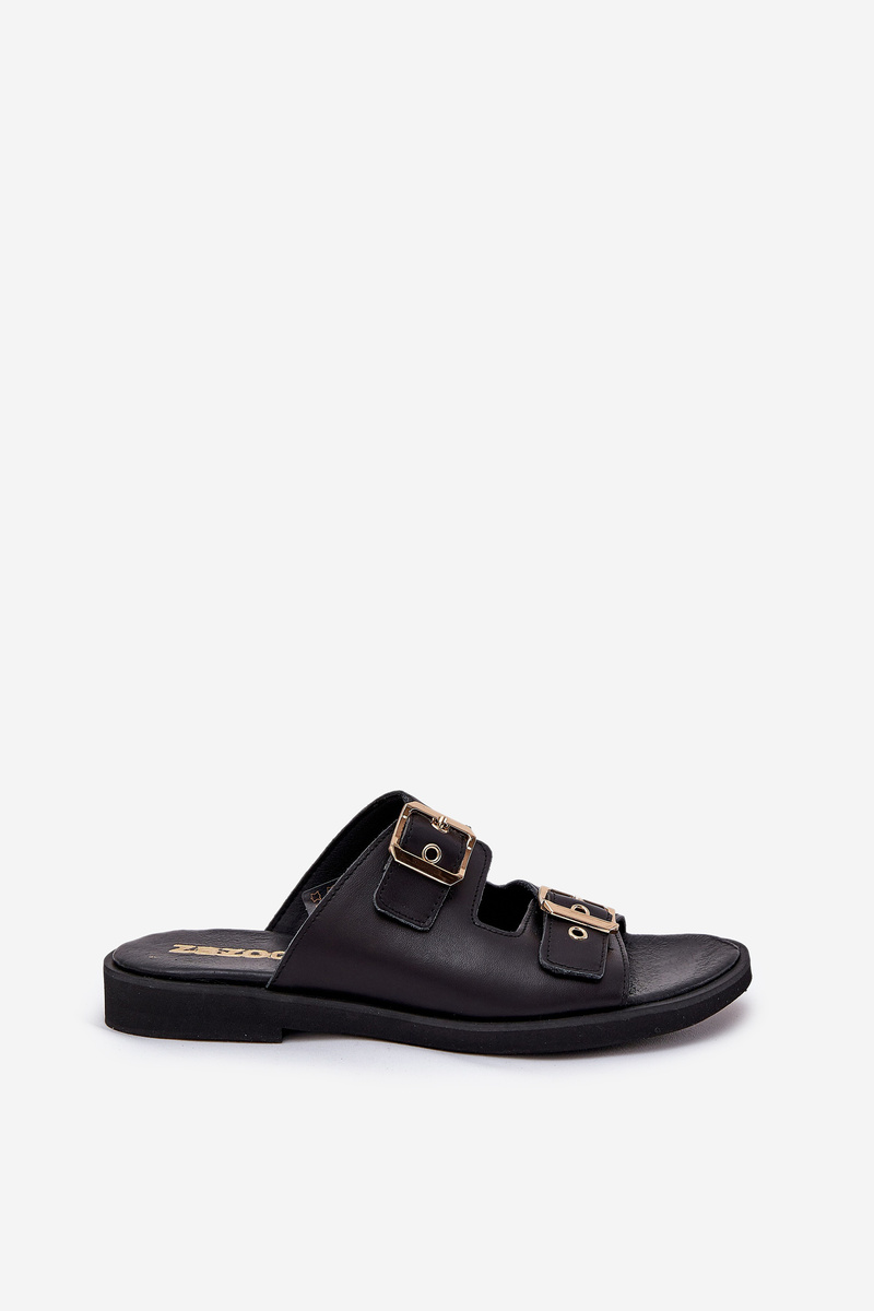 Kožené Ploché Sandále S Sponami Zazoo 3020 Čierne