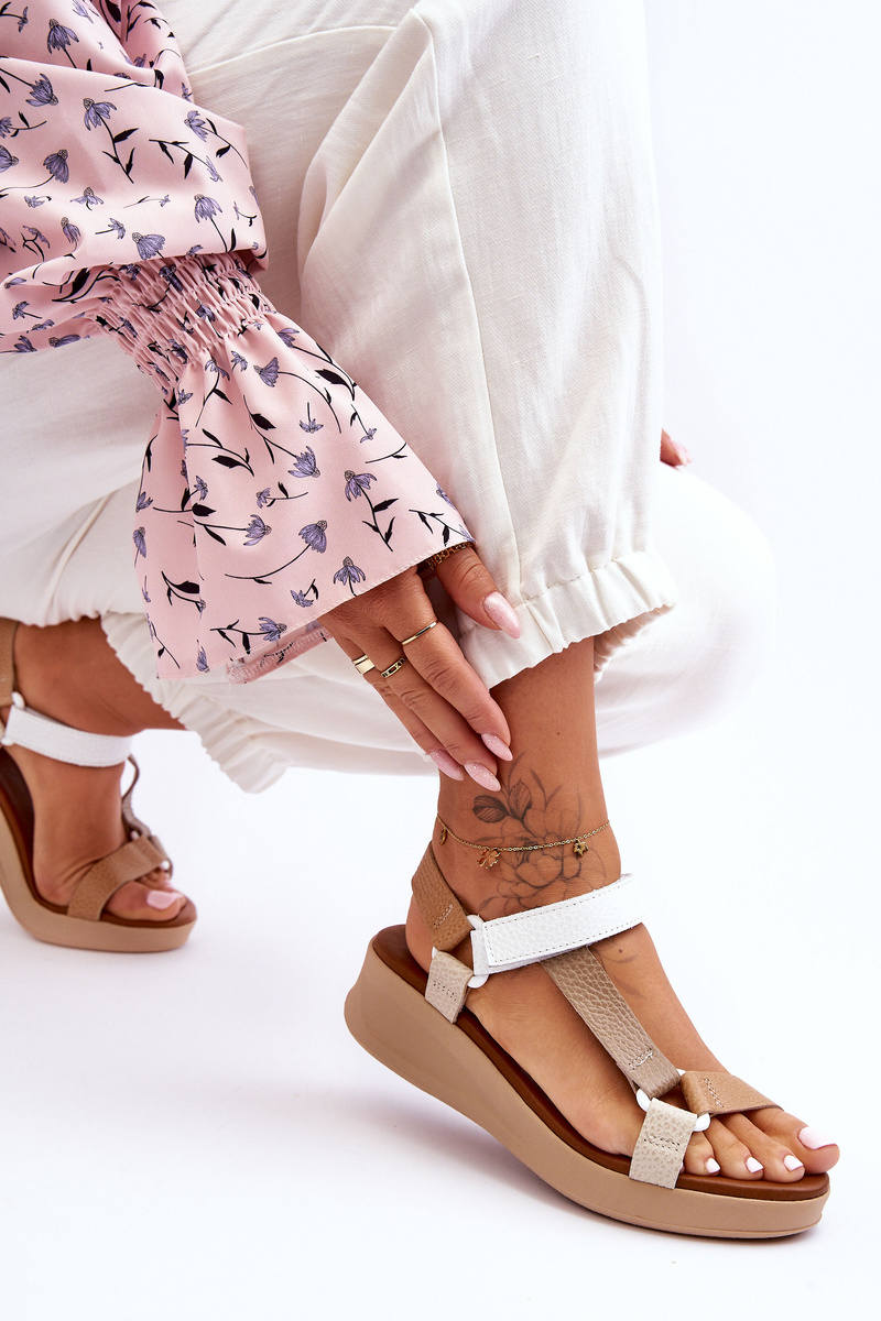 Sandále z značky Maciejka boli vyrobené z prírodnej kože. Majú mäkkú vložku, ktorá je počas používania mimoriadne pohodlná. Tieto klasické sandále sú umiestnené na plošine a nízkych klinách. Tieto topánky sú pripevnené nastaviteľným suchým zipsom. Ideálne pre horúce dni! Pri výbere veľkosti navrhnite tabuľku veľkosti. p>