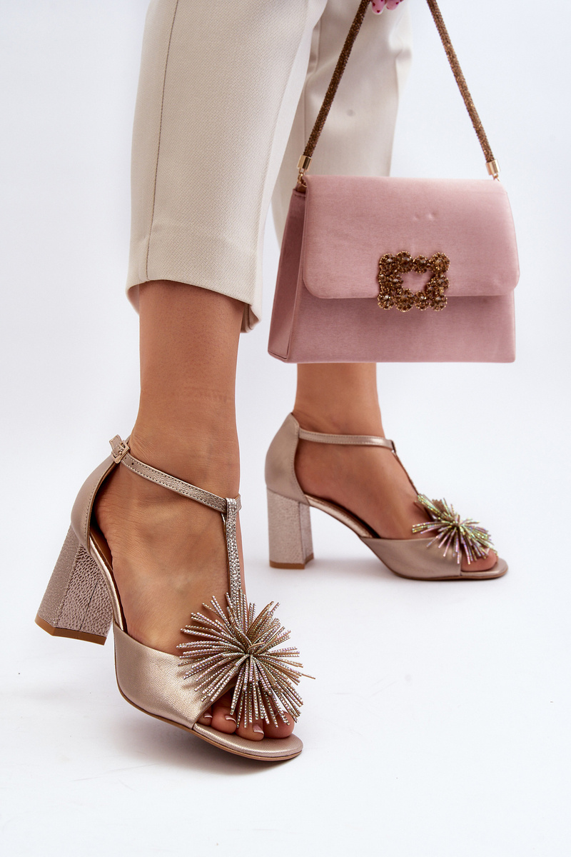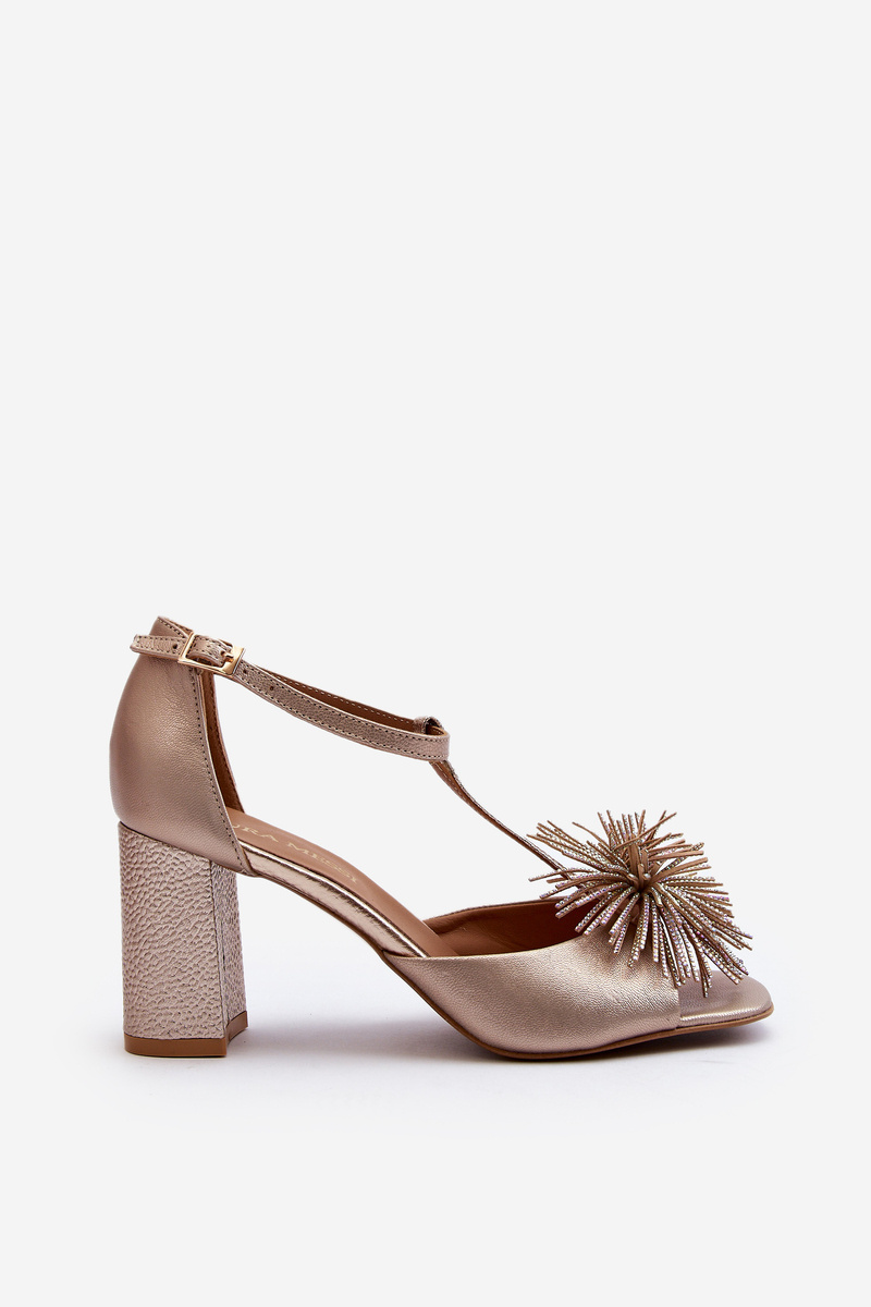Kožené sandále na opätku s ozdobou Laura Messi 2758 Zlaté