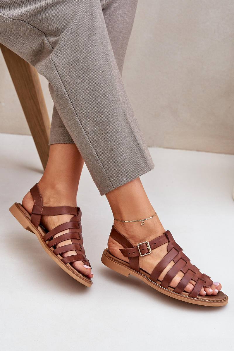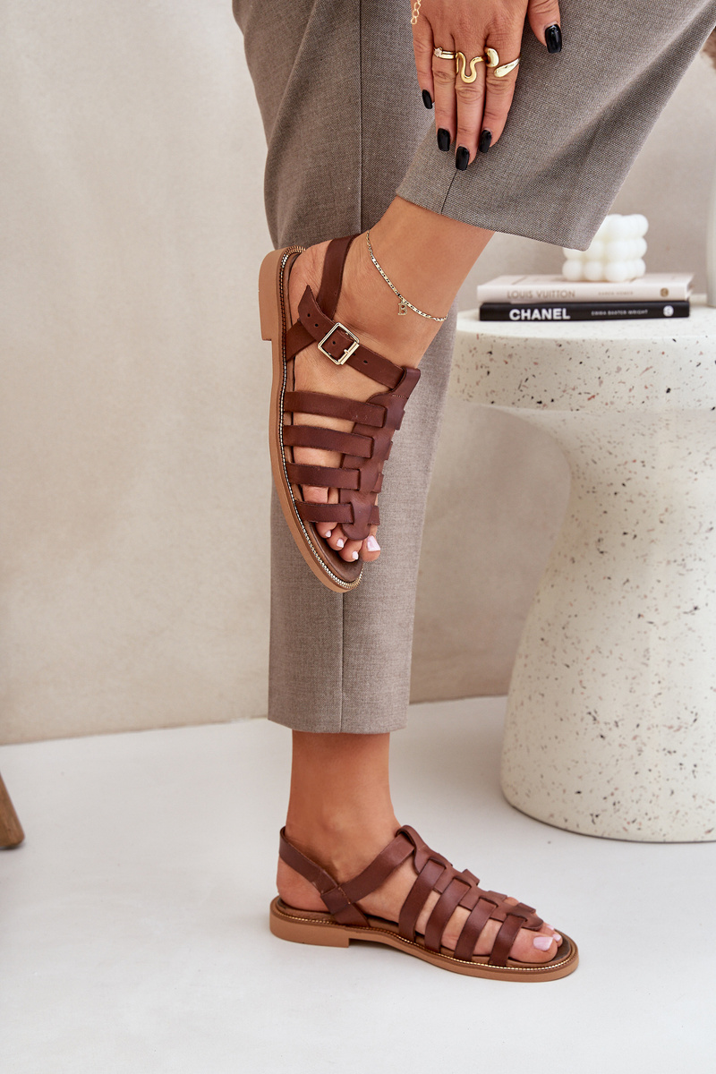 Kožené sandále na plochom podpätku hnedé Zazoo 3686