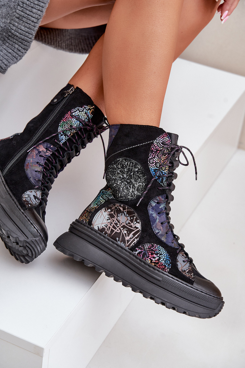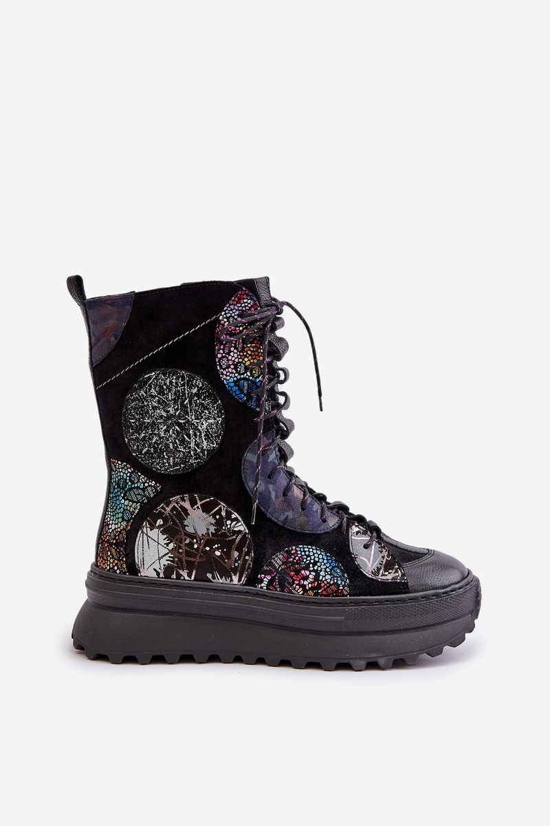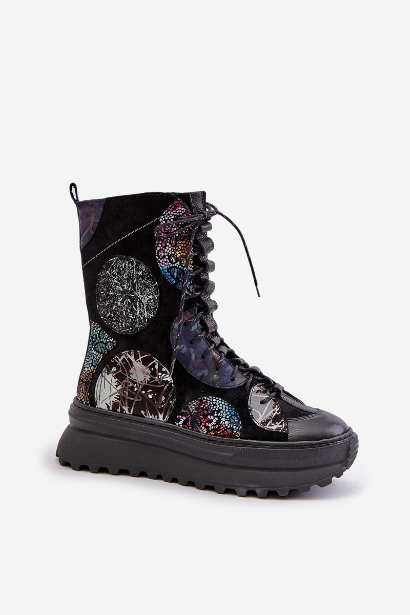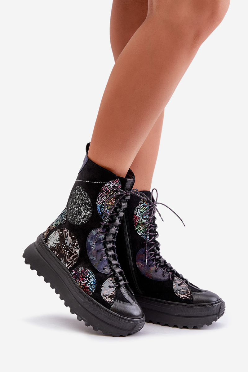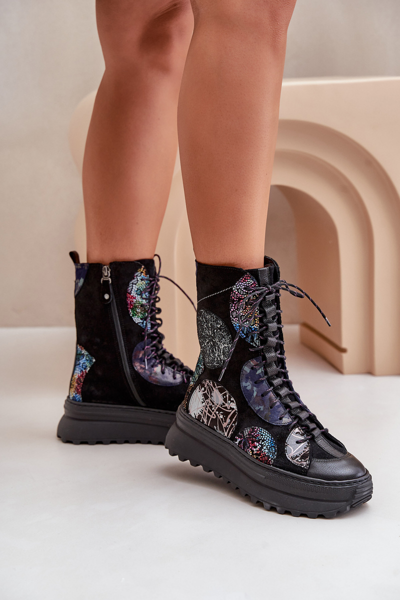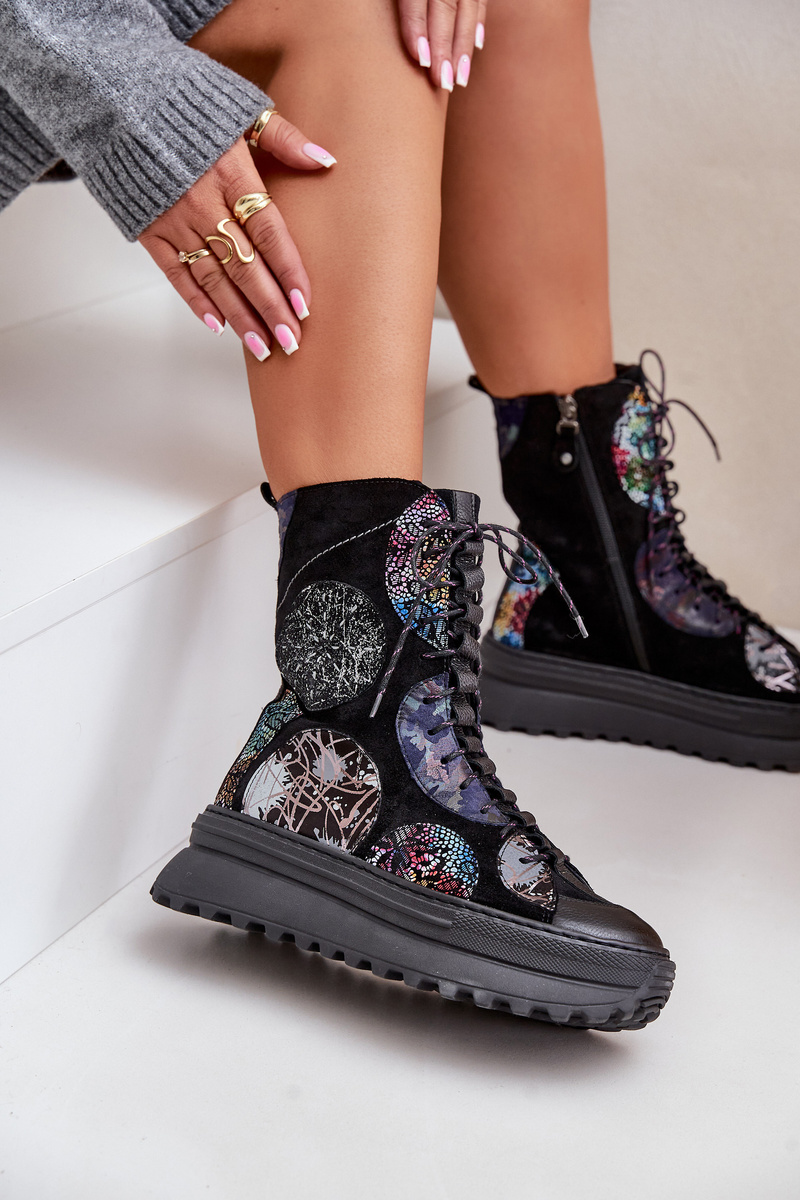 Kožené semišové čižmy na platforme zateplené čierne 06565-01
