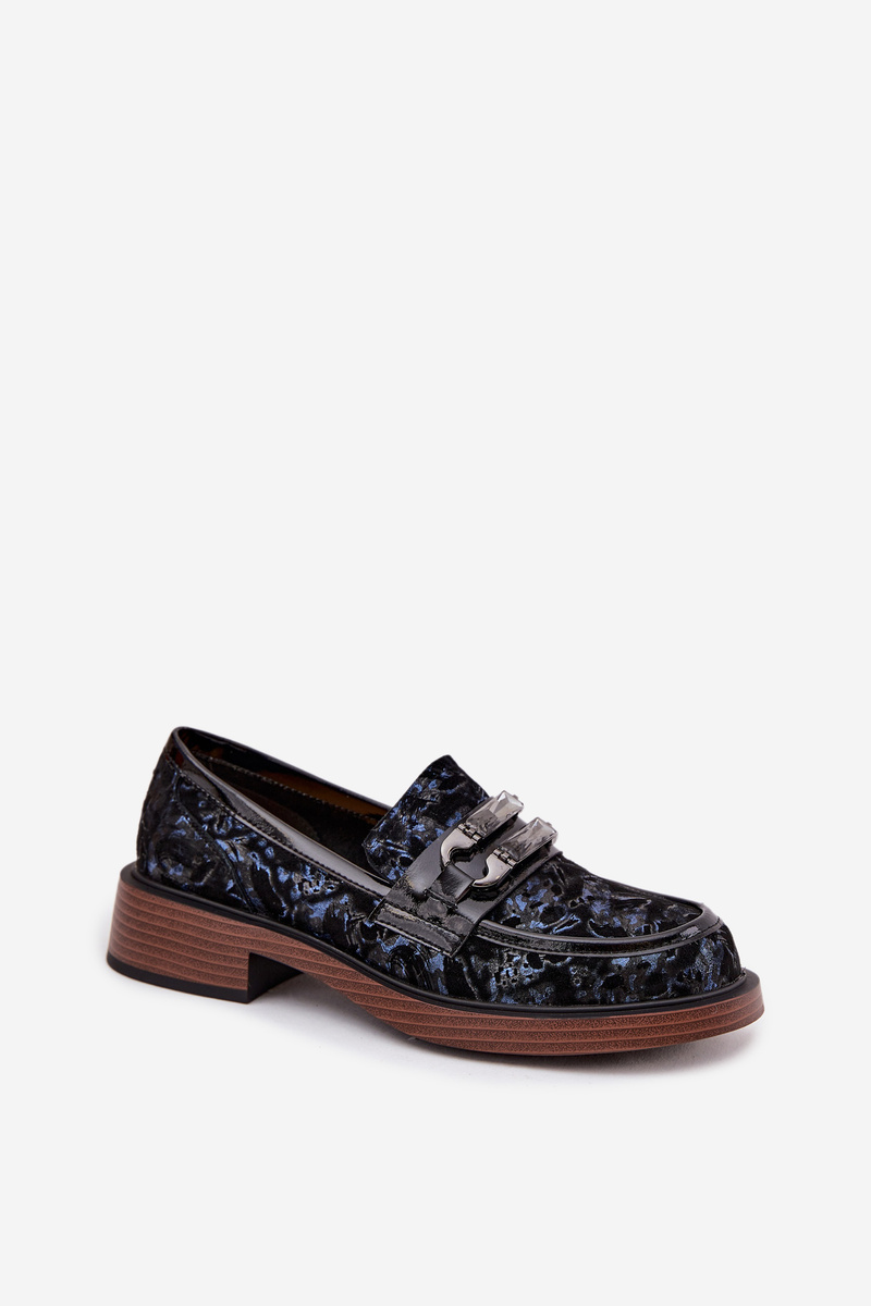 Kožené semišové dámske mokasiny s odlišným detailom D&A MR52-178 Čierne
