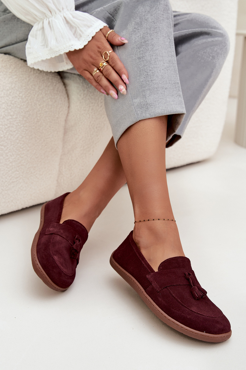 Kožené semišové mokasíny typu barefoot Zazoo 322 bordó