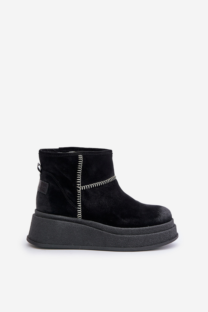 Kožené Semišové Snehové Topánky Na Platforme A Opätku Hnedé Maciejka 06769-01 Čierne