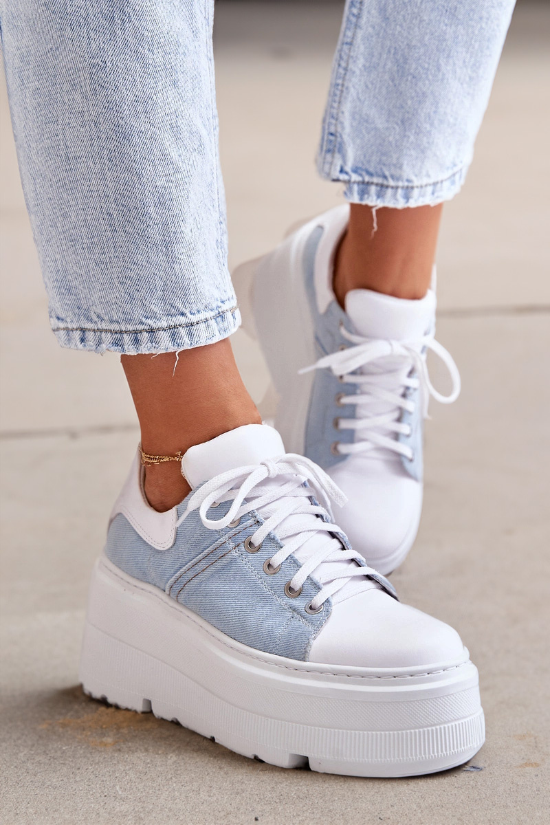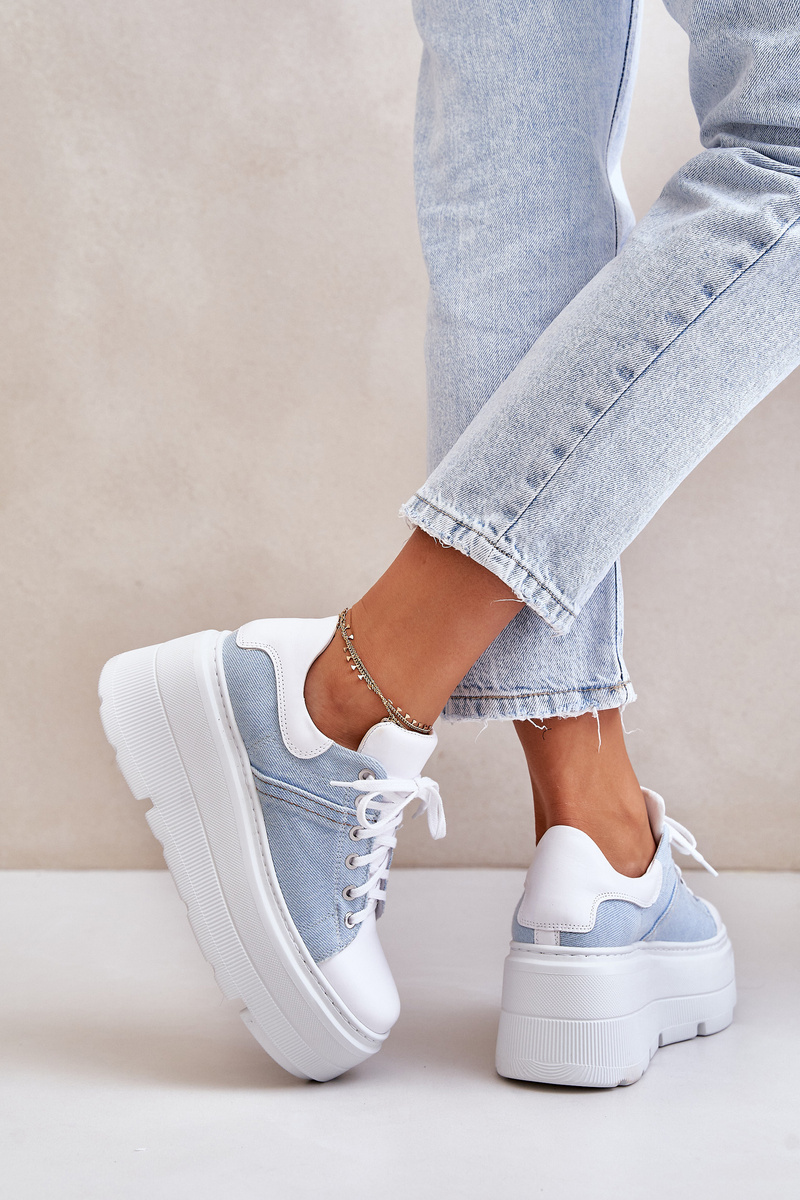 Kožené Sneakersy Na Masívnej Platforme Džínové Biele Lewski 3586