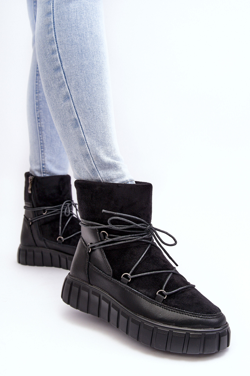 Kožené snehové topánky na čiernej platforme Maxava