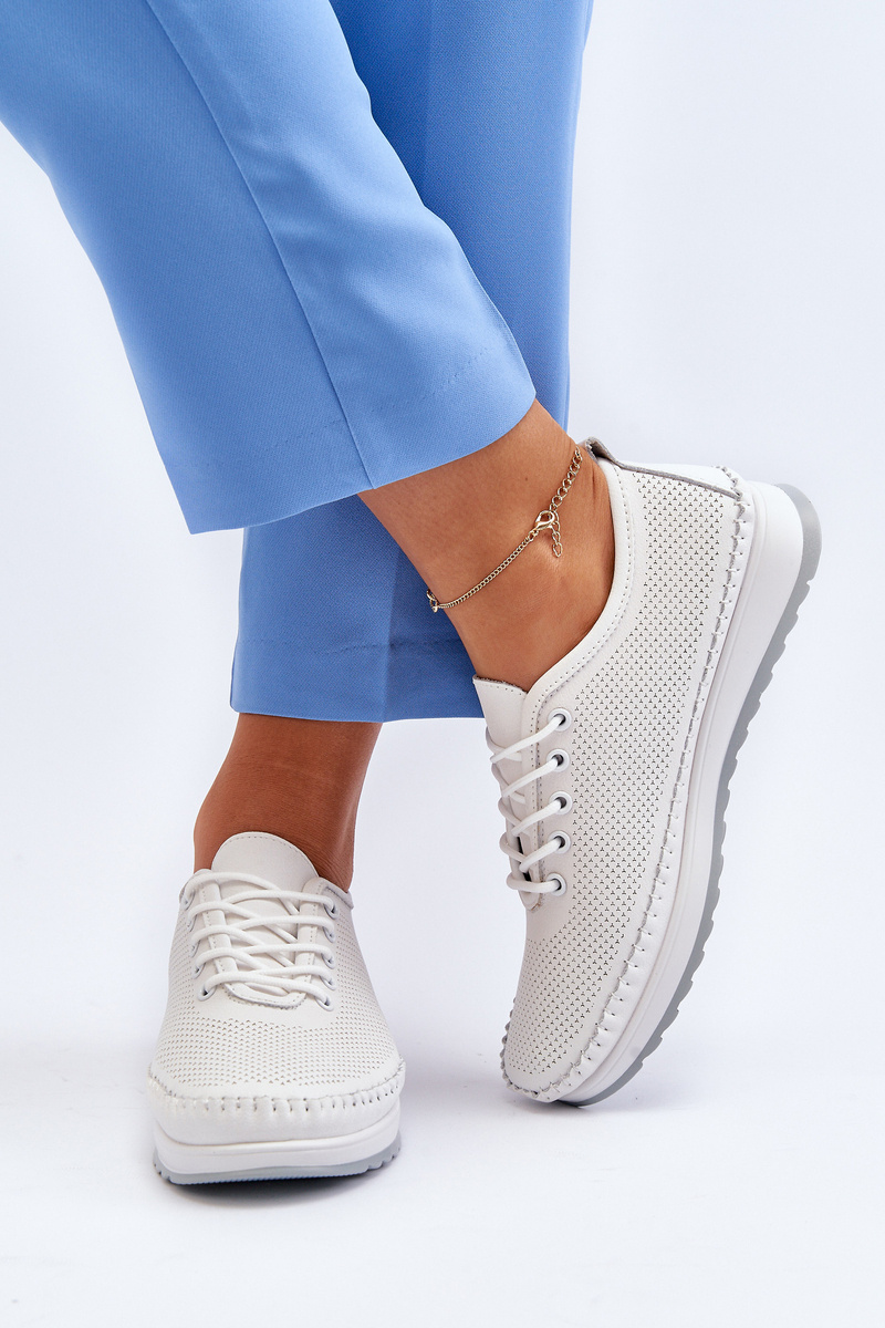 Dámska športová obuv je vyrobená z prírodnej kože, čo zaručuje vysokú kvalitu a odolnosť. Ich klasický dizajn so šnurovaním a zaobleným noskom im dodáva univerzálny vzhľad, ktorý pasuje k mnohým štýlom. Jemná platforma im dodáva ľahkosť a pohodlie počas nosenia. Vložka vyrobená z kože zaisťuje dodatočný komfort. Tento model je nevyhnutnou súčasťou vášho šatníka! Při výběru velikosti se řiďte tabulkou velikostí.