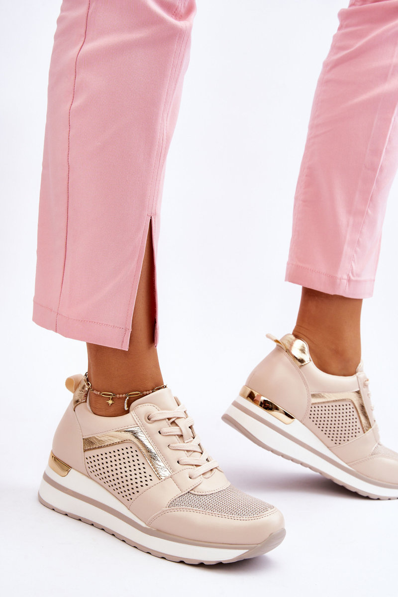 Pohodlné tenisky vyrobené z ekologickej kože s jemnou perforáciou na bokoch hornej časti a prednou vložkou z materiálu. Klasicky šnurovaný model. Topánky boli umiestnené na plošine a malý klin. Mäkká vložka zabezpečí pohodlné použitie obuvi aj po celý deň! Pri výbere veľkosti postupujte podľa tabuľky veľkosti.