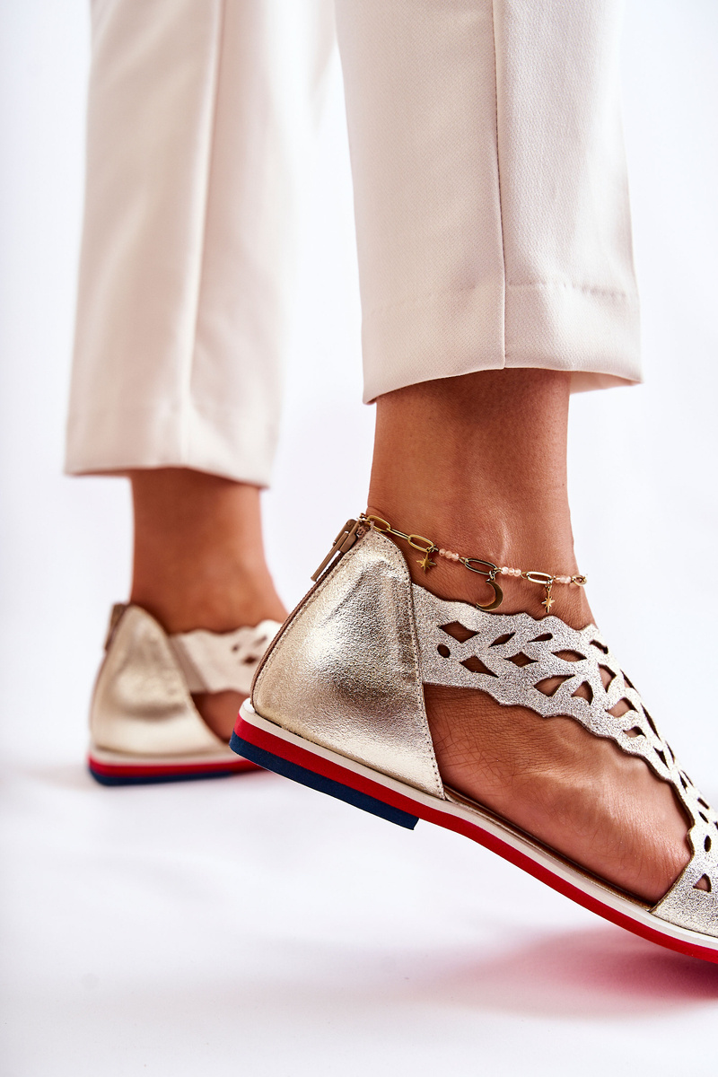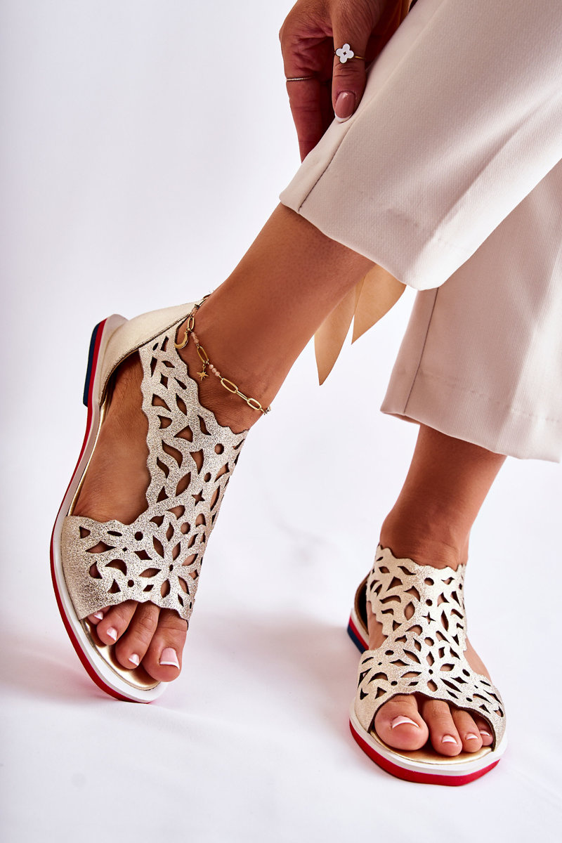Kožené svetlo otvorené sandále złote alima