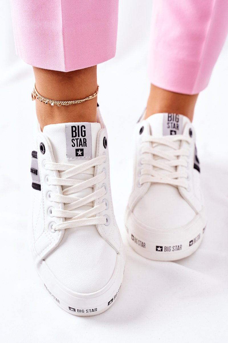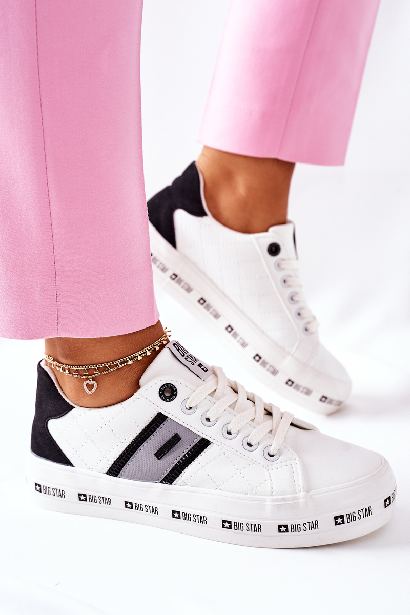Dámske tenisky poľskej značky Big Star. Klasická forma sa zhoduje s mnohými štýlmi. Topánky sa dobre prispôsobujú tvaru chodidla, majú mäkkú vložku materiálu. Sú vyrobené z vysoko kvalitnej ekologickej kože. Nezabudnite skontrolovať našu kolekciu veľkých hviezd. Pri výbere veľkosti navrhnite tabuľku veľkosti.