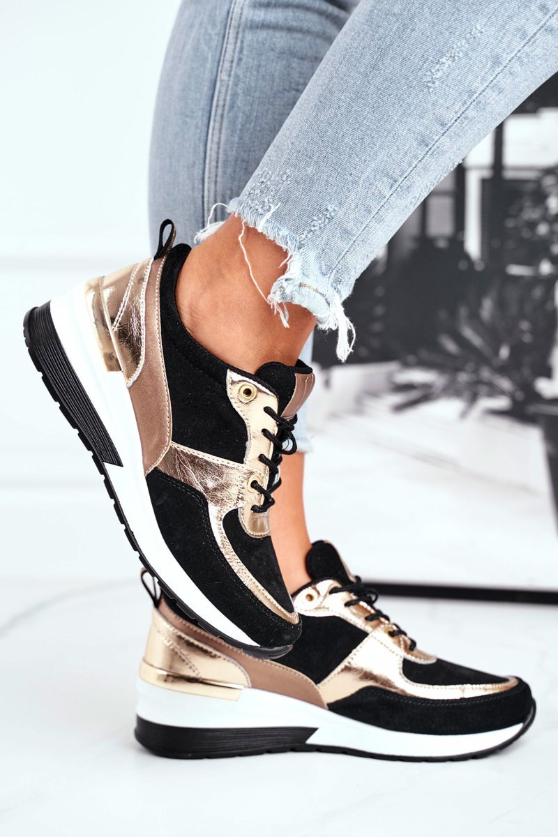 Kožené tenisky na Vinceza 7777 Black and Gold Wedge