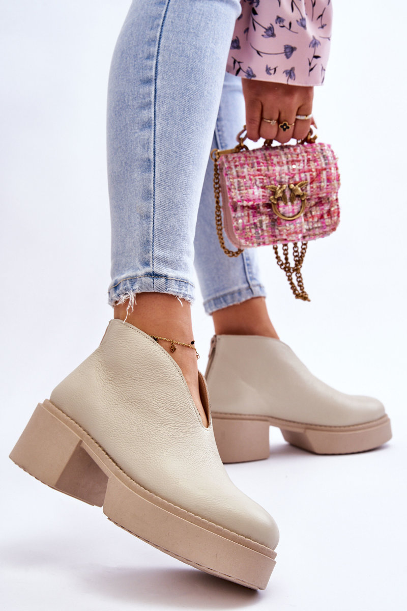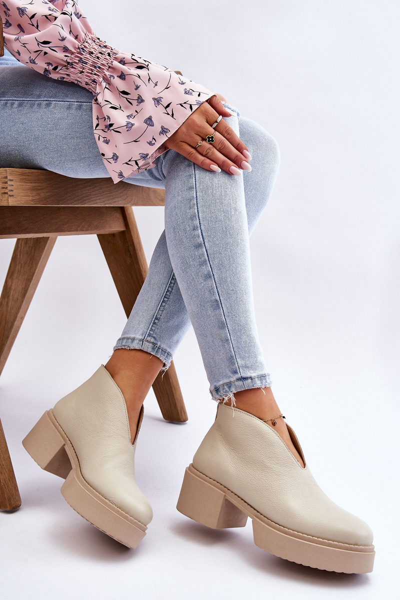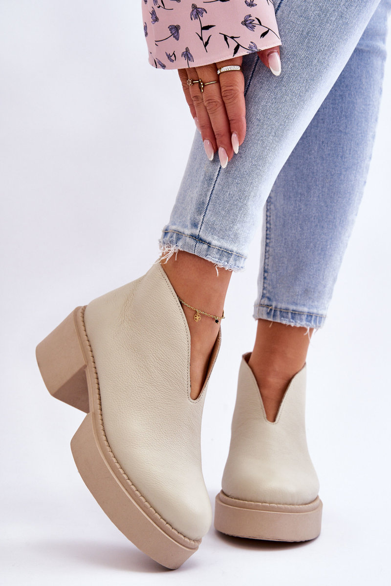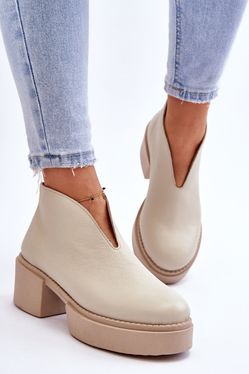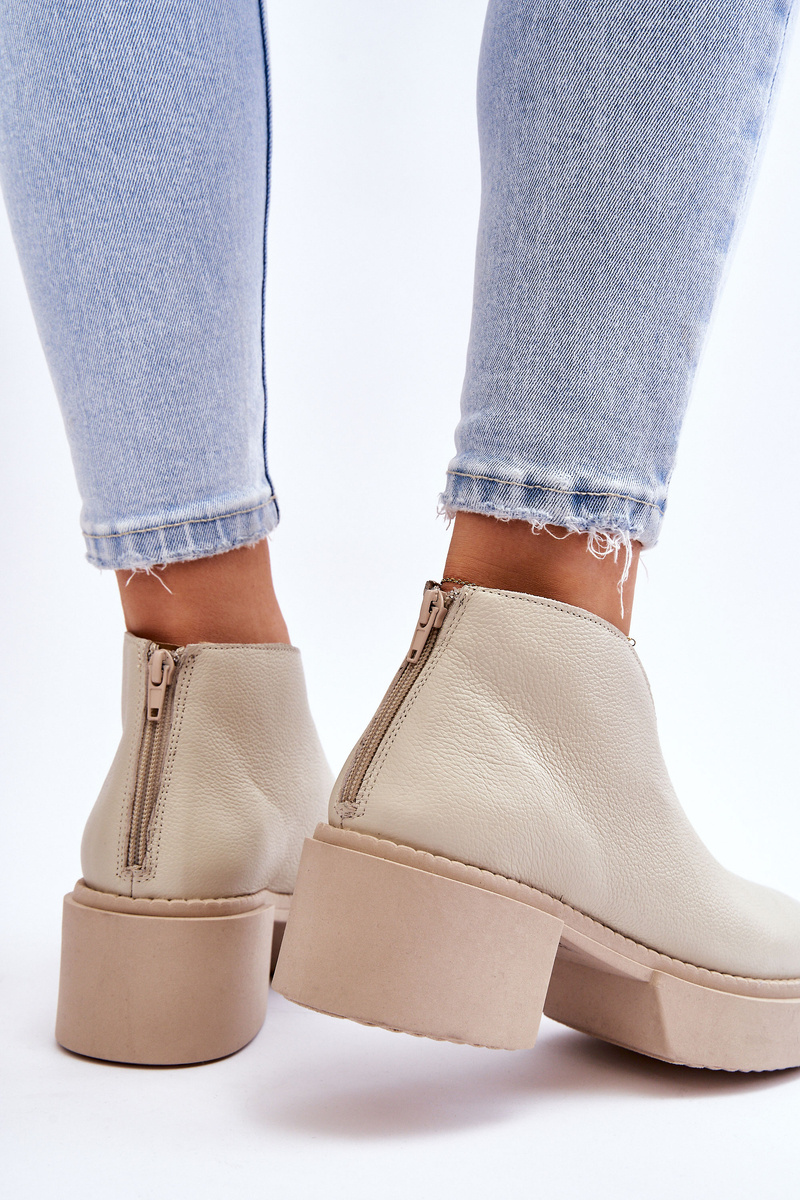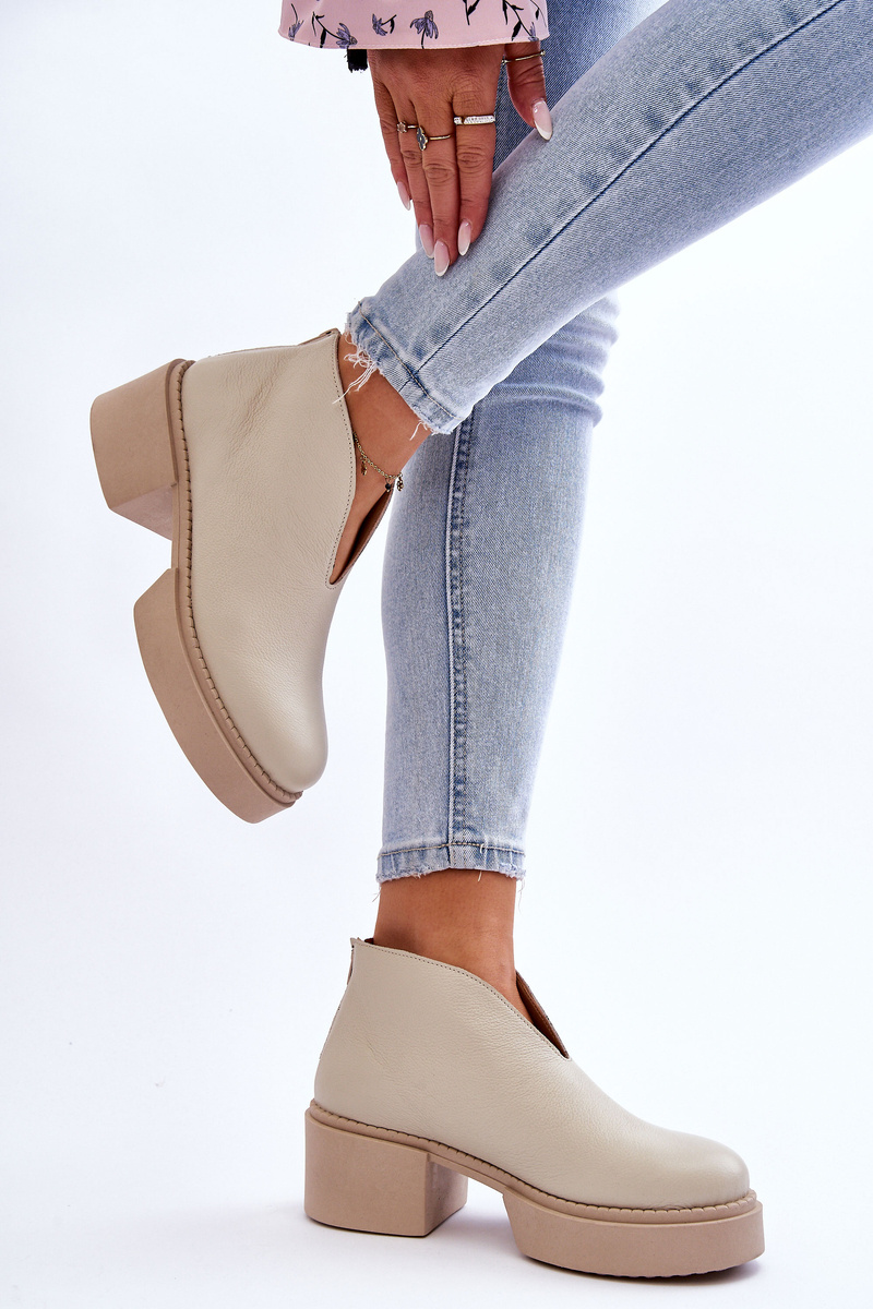 Kožené topánky na masívnej päte Nicole 2795/054 Svetelná béža
