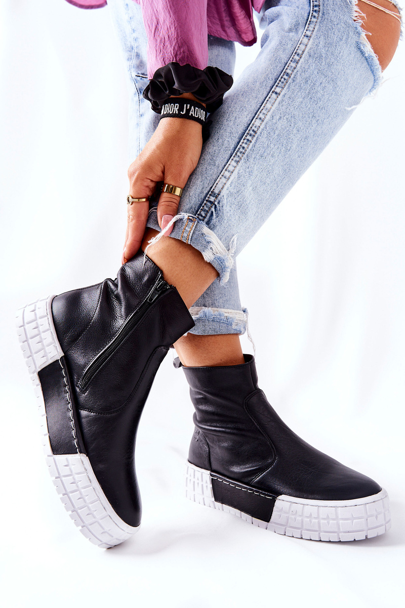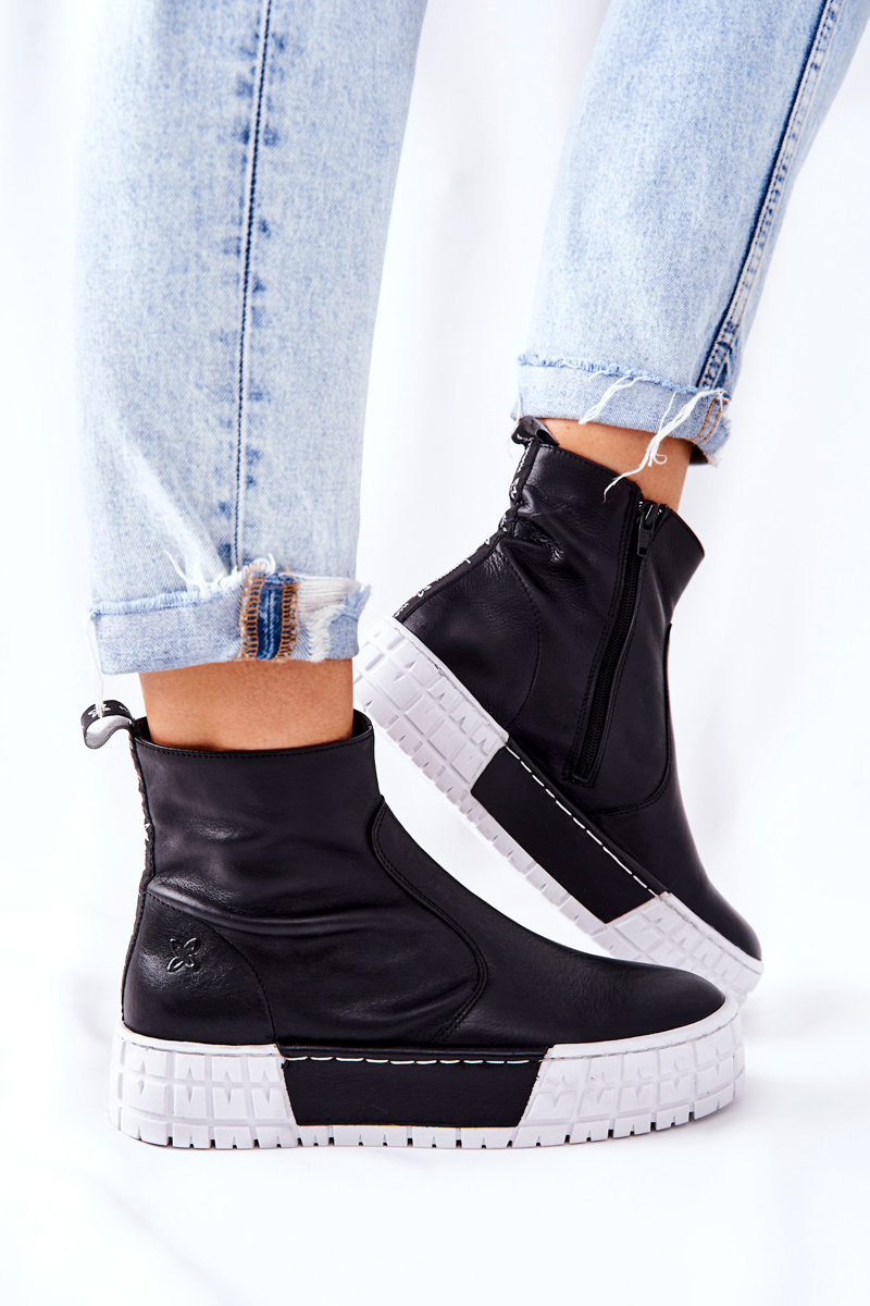 Kožené topánky na platforme Czarne Maciejka 05216-01