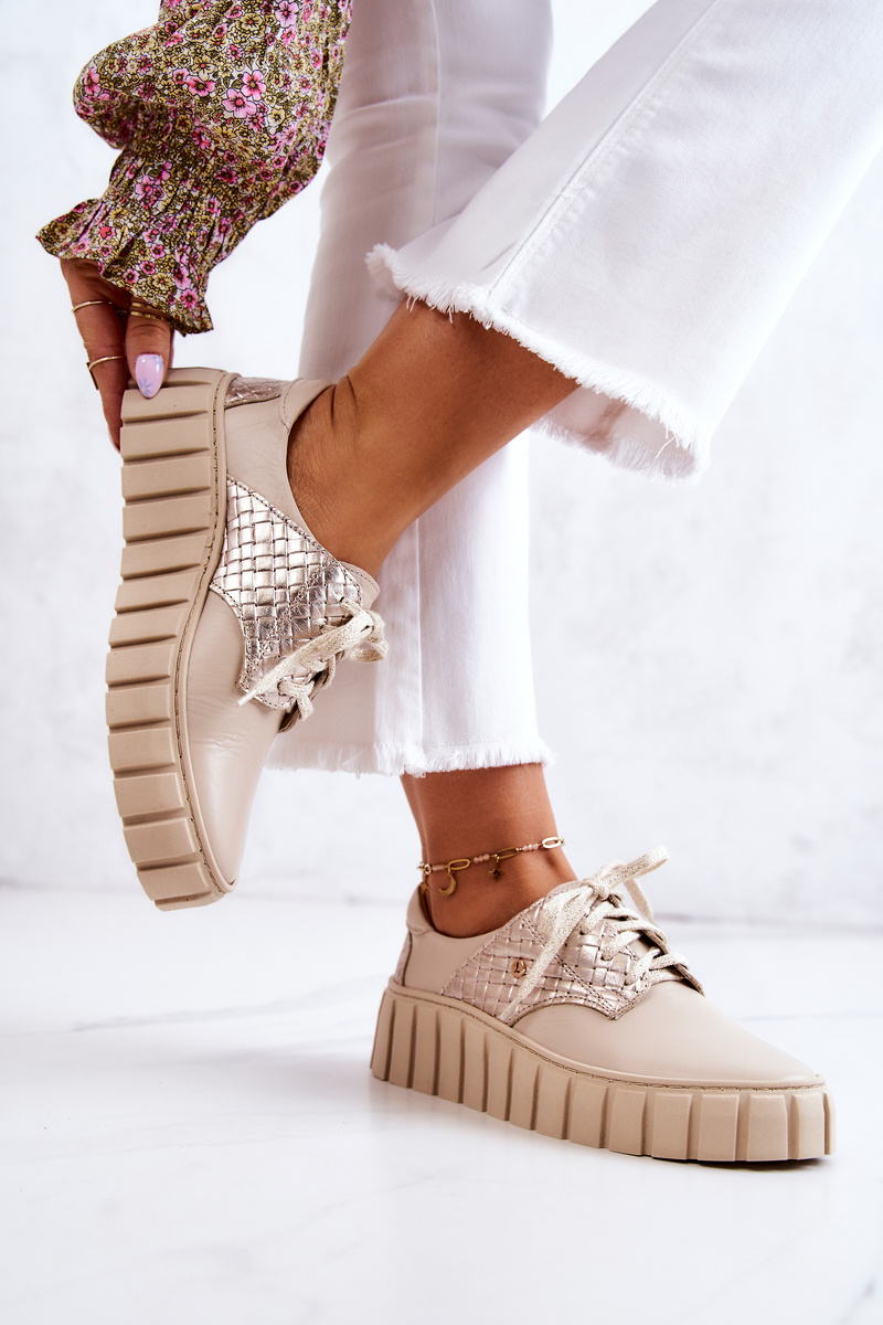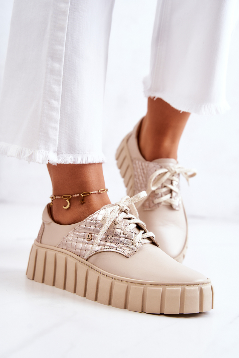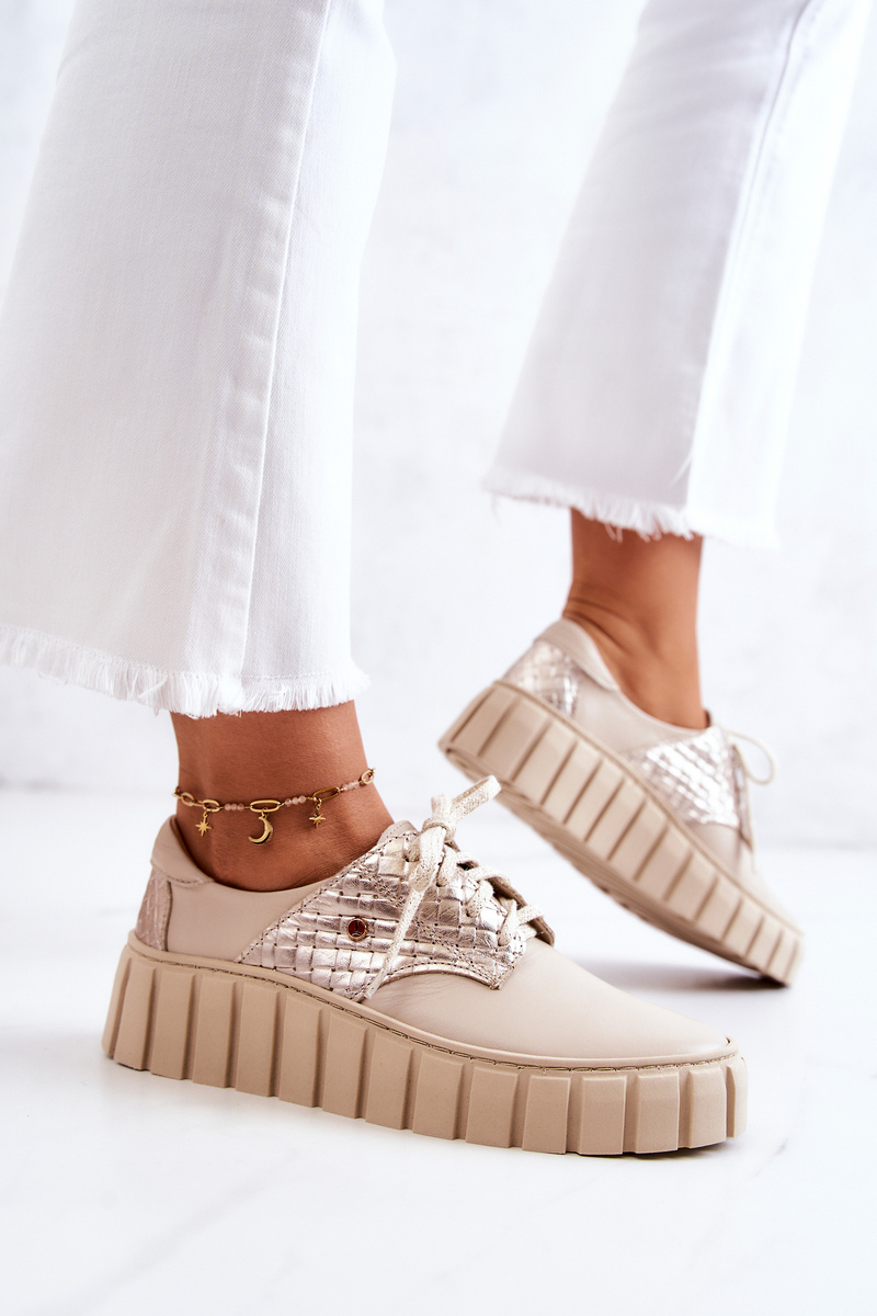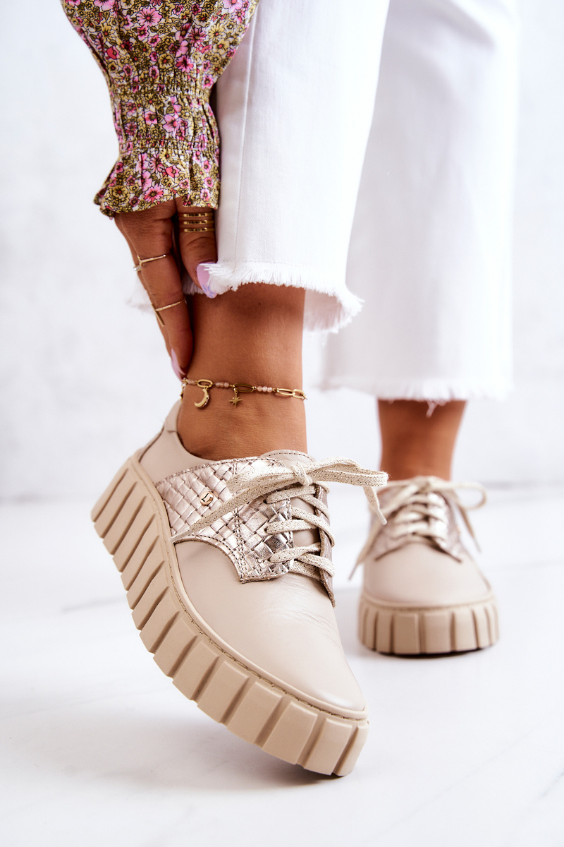 Topánky majú plochú viazanie, zdobené lesklým niťou, šnúrkami. Postavené na masívnej plošine s drážkami po stranách. Vo vnútri je pohodlná prírodná kožená vložka, ktorá je dodatočne profilovaná. Zvuk pred členkom bol vyrobený z prírodnej kože s kovovým efektom. Veľmi ľahké a pohodlné na použitie. Ideálne pre elegantné nohavice, tylové sukne alebo pletené šaty. Môžete ich skombinovať s rôznymi štýlmi - vždy budú vyzerať skvele! Tieto úžasné topánky určite musia byť vo vašom šatníku! Pri výbere veľkosti, navrhnite tabuľku veľkosti.