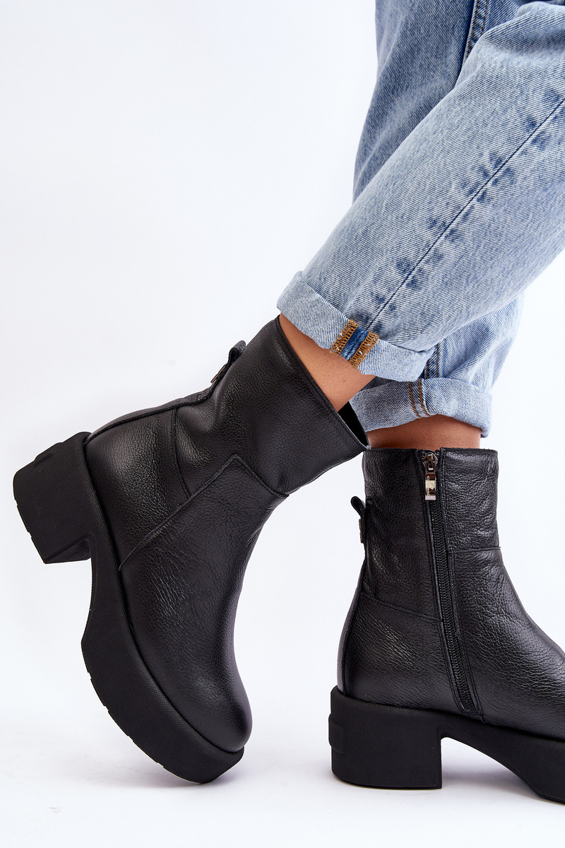 Dámske topánky vyrobené z prírodnej kože. Umiestnené na nízkych podpätkoch vo forme bloku a platformy. Agent izoloval prikrývku topánky. Model pripevnený posúvačom na boku hornej časti. Zaoblené prsty na nohách. Stuhnuté. Klasický model, ktorý sa môžete vyrovnať s mnohými jesennými štylizáciami! Pri výbere veľkosti postupujte podľa tabuľky veľkosti.