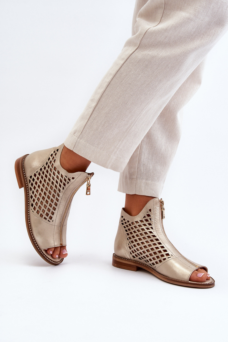 Kožené Vyrezávané Sandále Na Zips Zlaté Zazoo 977/L