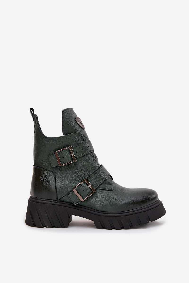 Kožené zateplené dámske čižmy s prackami a dekoratívnym detailom Zazoo 60482 Tmavo zelené