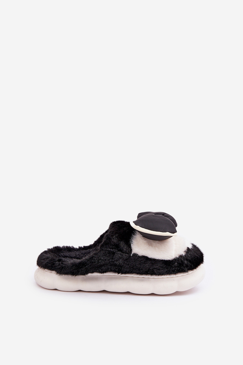 Kožušinové Papuče S Mašľou Čierne Grilis