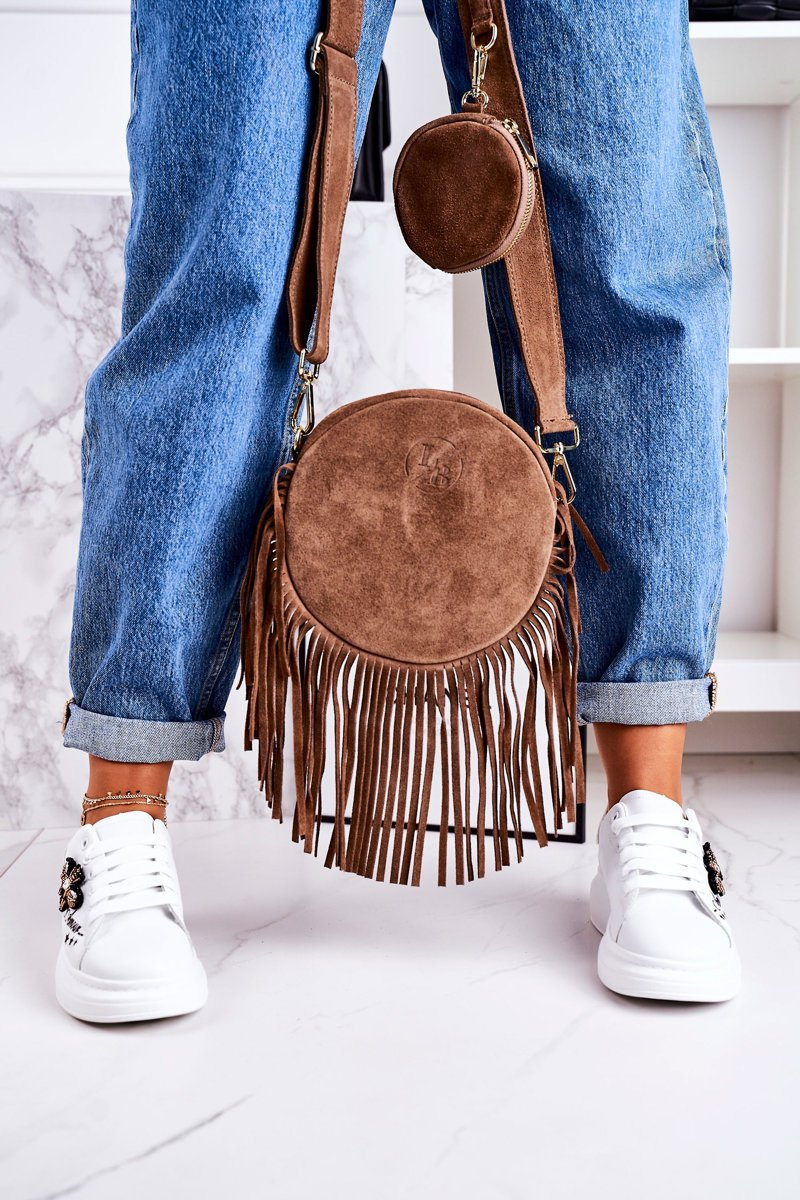 Ak potrebujete kabelku, ktorá je veľmi praktická a priestranná, tento model Laura Biaggi je pre vás! Taška je jeden -chamber, má 1 vnútorné vrecko. Sada obsahuje odnímateľný remienok a okrúhlu kabelku. Taška v štýle boho je vyrobená zo semišovej prírodnej kože. Tento model je spôsob, ako pre módnu nudu!
