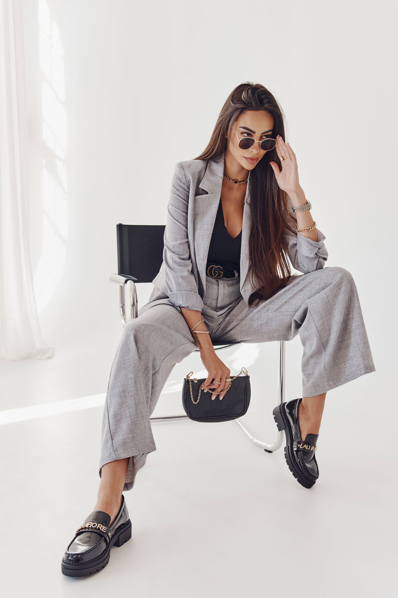Klasické topánky v štýle krásnych Laura Fiore Loafers! Topánky boli vyrobené z vysoko kvalitnej lakovanej ekologickej kože. Charakteristický popruh s posuvnými písmenami Laura Fiore vyzerá naozaj úžasne. Topánky majú vysokú podrážku a pätu, ktorá zdvihne našu postavu. Mäkká kožená vložka sa pri nosení postará o pohodlie. Pri výbere veľkosti navrhnite tabuľku veľkosti.