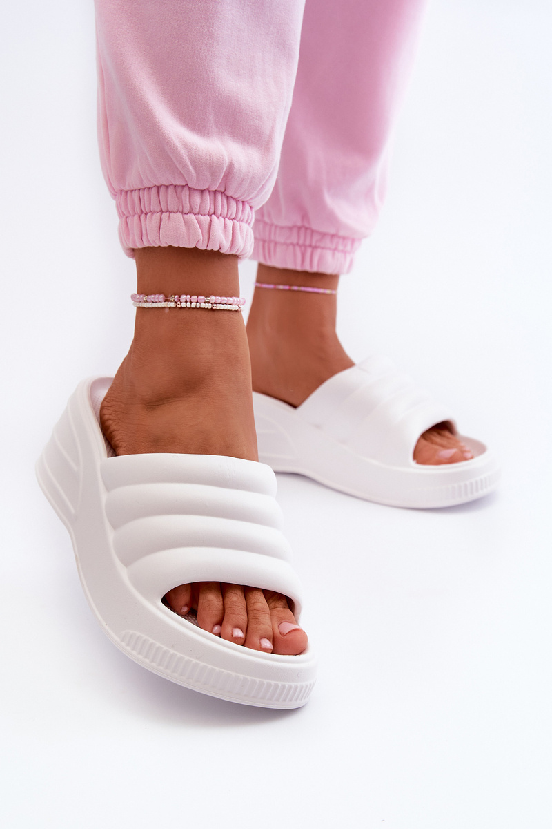 Dámske papuče vyrobené z peny. Umiestnené na platforme a klíne. Ľahký model, ktorý je ideálny na dni strávené pri bazéne! Při výběru velikosti se řiďte tabulkou velikostí.