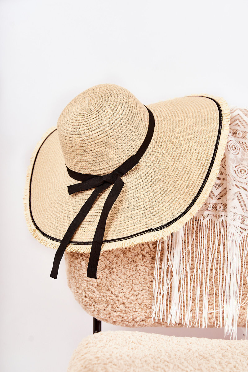 Dámsky klobúk s krásnym pásom, ktorý má luk. Produkt je vyrobený zo 100 % papiera. Má reťazec, vďaka ktorým sa môžeme dokonale vyrovnať. Kruhový kruh je dosť široký a pobrežie je zubaté. Klobúk môžete používať počas sviatkov v horúcich dňoch. Nezabudnite skontrolovať našu kolekciu klobúkov!