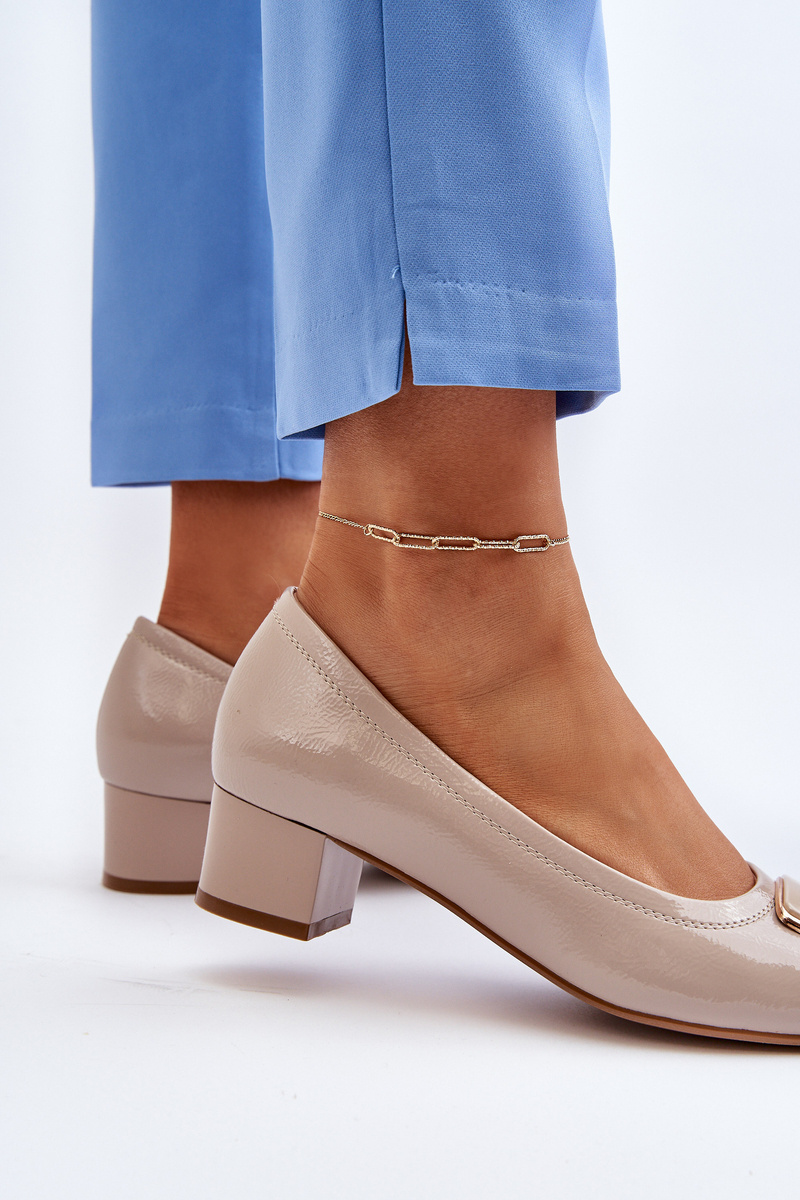Lakované členkové topánky na opätku s ozdobou béžové Enollia