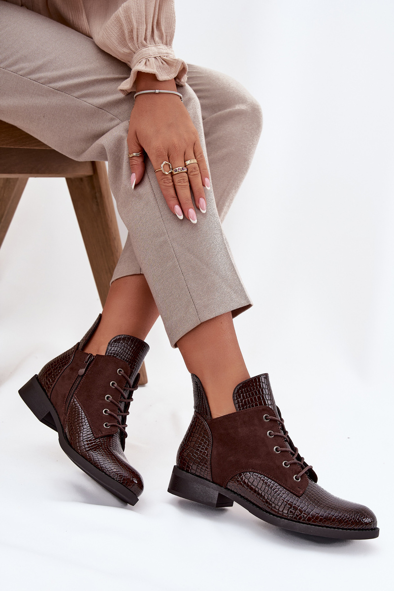 Lakované dámske členkové topánky s ozdobným doštičkovaním Vinceza 16477 hnedé