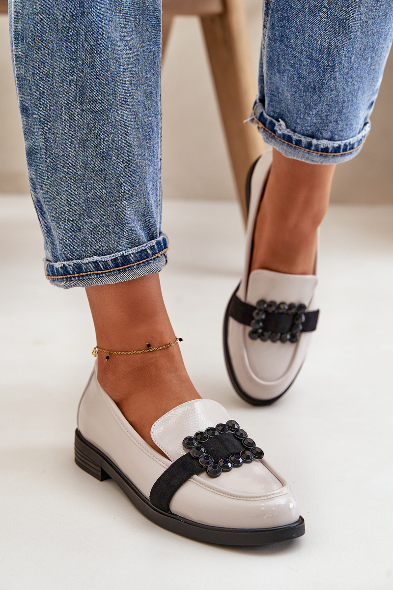 Lakované Dámske Mokasíny S Dekoráciou Svetlosivé Vinceza 58389