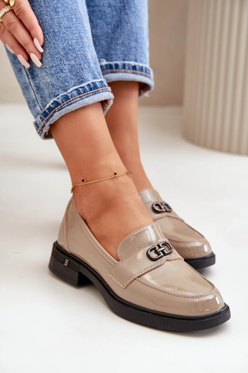 Lakované dámske mokasíny z prírodnej kože khaki Vinceza 58409