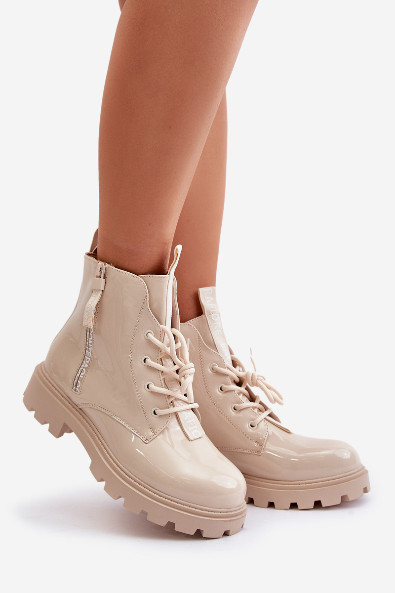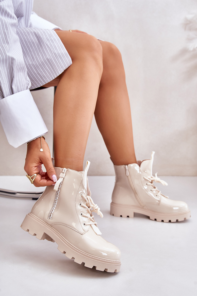 Lakované Dámske Pracovné Topánky Zateplené S Nápismi Béžové Zinfreya