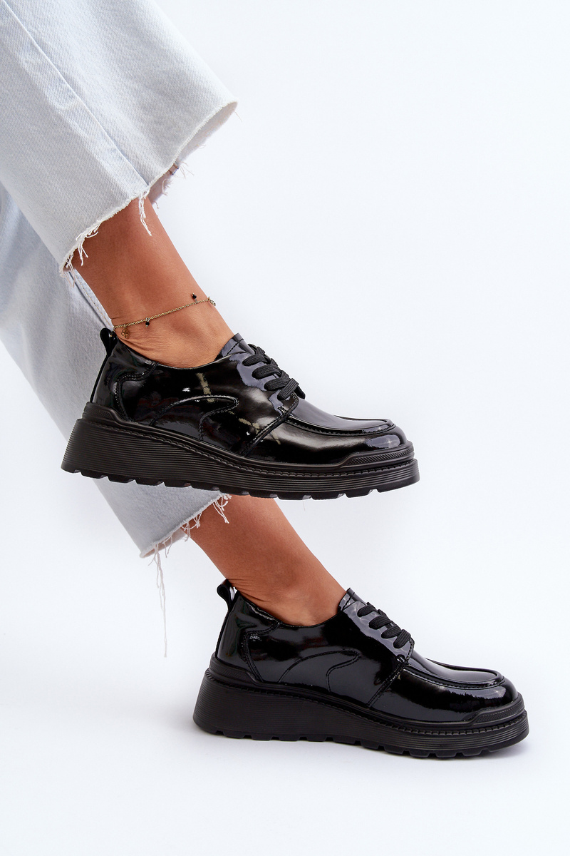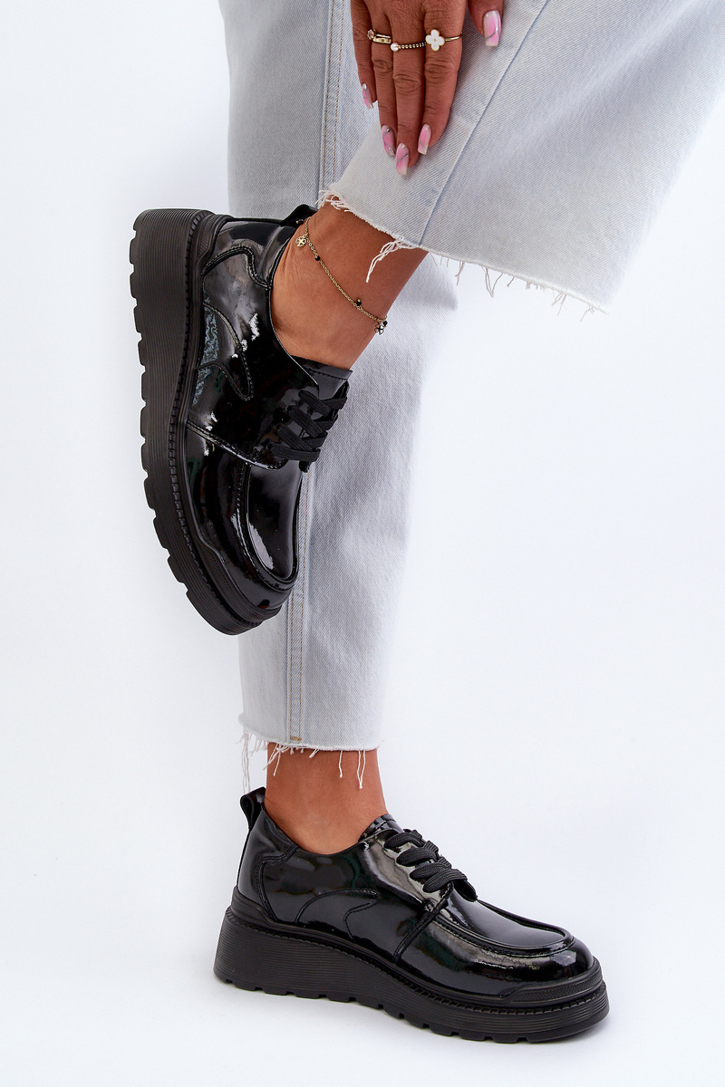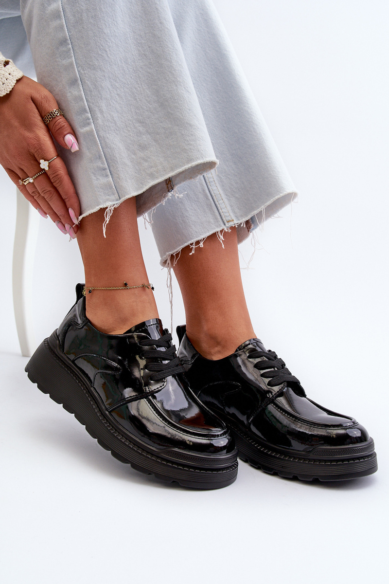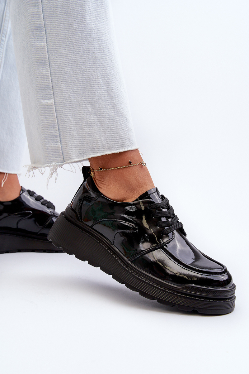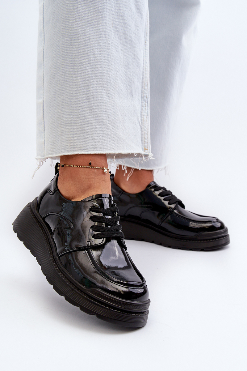 Dámske lakové poltopánky sú ideálnou kombináciou elegancie a pohodlia. Šnurovanie zaisťuje vynikajúce prispôsobenie nohe. Mäkká a pohodlná stielka zaručuje pohodlie počas používania. Zaoblené špičky pridávajú jemnosť. Skvelá voľba pre ženy, ktoré hľadajú štýlovú obuv na rôzne príležitosti! Při výběru velikosti se řiďte tabulkou velikostí.